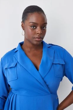 Karen Millen Plus Size Soft Tailored Lace Up Pleated Shirt Dress
