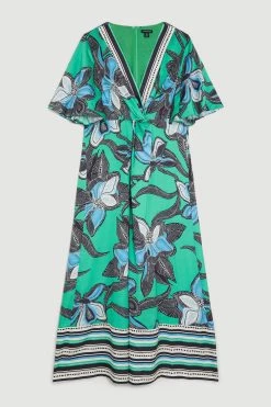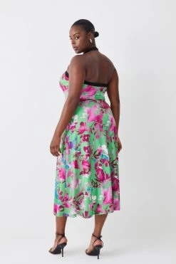 Karen Millen Plus Size Batik Floral Hammered Satin Twist Midi Dress