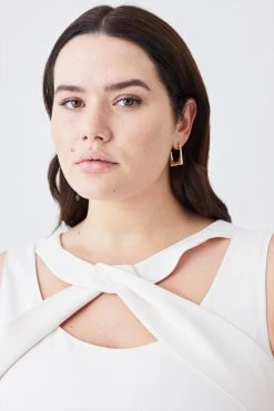 Karen Millen Plus Size Structured Crepe Roll Neck Dip Hem Midi Dress
