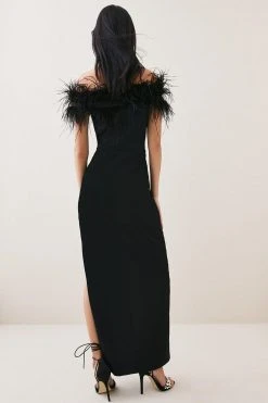 Karen Millen Tall Feather Bardot Stretch Crepe Maxi Dress