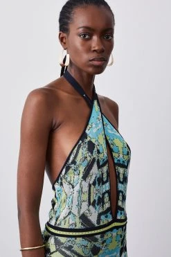 Karen Millen Tall Slinky Knit Jacquard Geo Maxi Column Dress