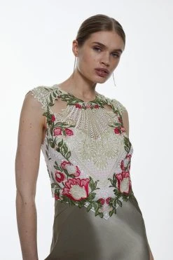Karen Millen Tall Guipure Lace Satin Maxi Dress