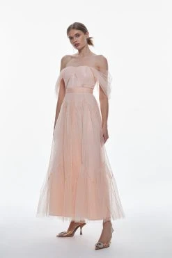 Karen Millen Tulle Corseted Bardot Maxi Dress