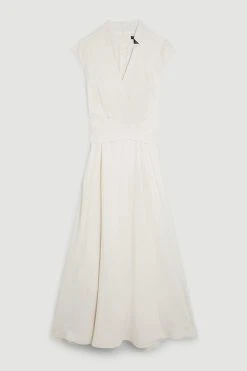 Karen Millen V Neck Wrap Detail Woven Midi Dress