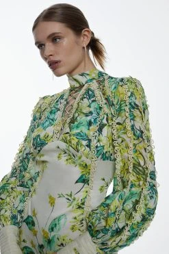 Karen Millen Trailing Floral Woven High Neck Mini Dress