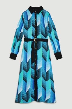 Karen Millen Geo Belted Woven Midi Shirt Dress