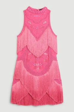 Karen Millen Fringe And Beaded Halter Neck Mini Dress