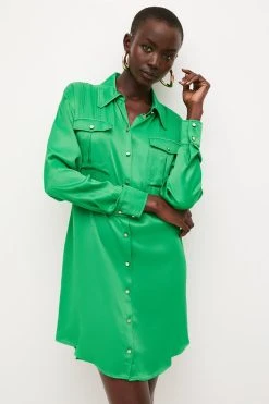 Karen Millen Viscose Satin Longline Utility Woven Shirt