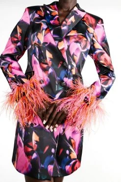 Karen Millen Weston Marble Feather Cuff Blazer Mini Dress