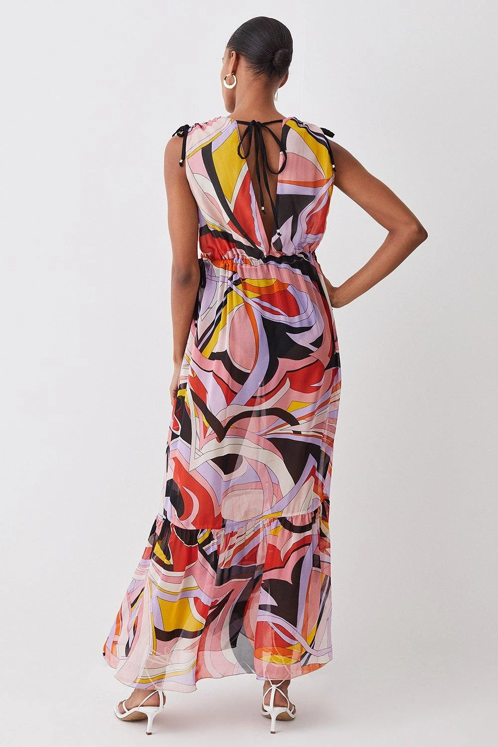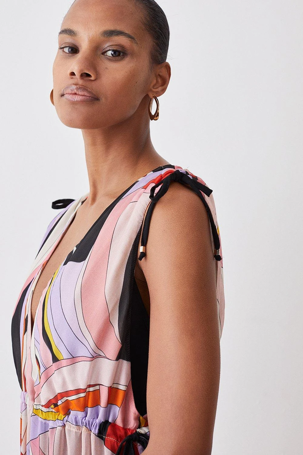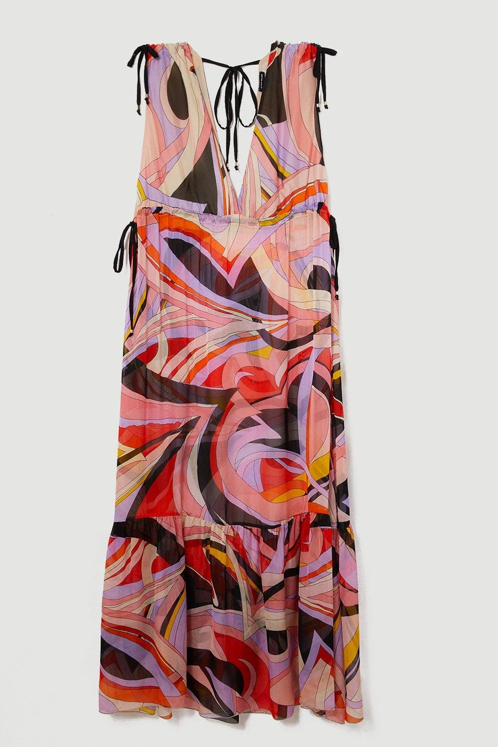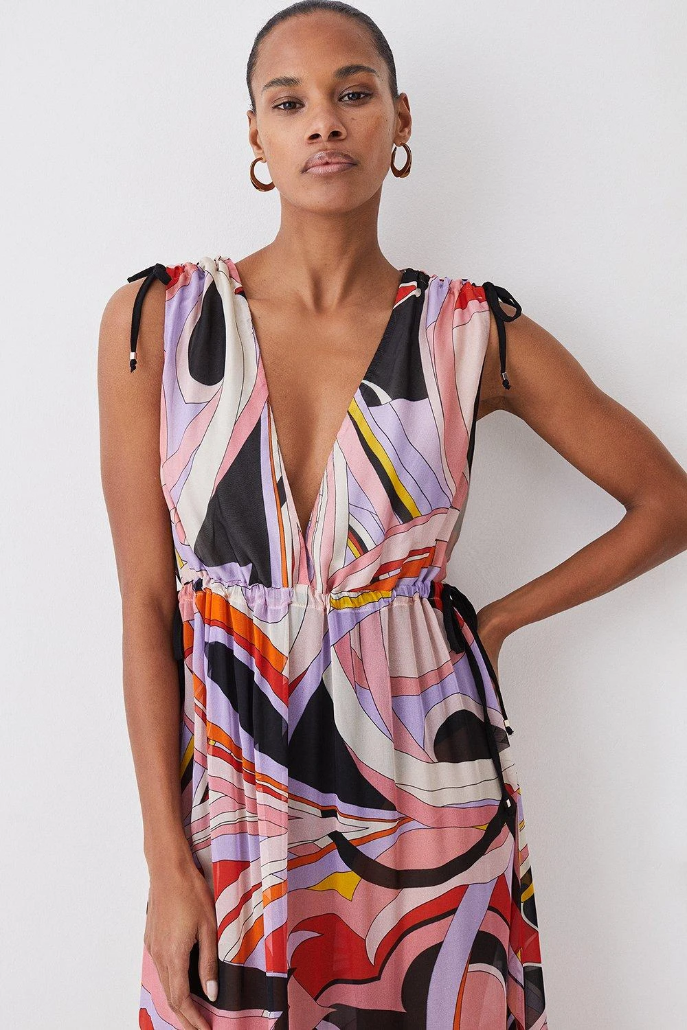 100% Silk. Gentle machine wash at 30 with similar colours. Model Height 5”10 – Model wears a UK 8/US Size 6. Centre back length of a 10: 120cm