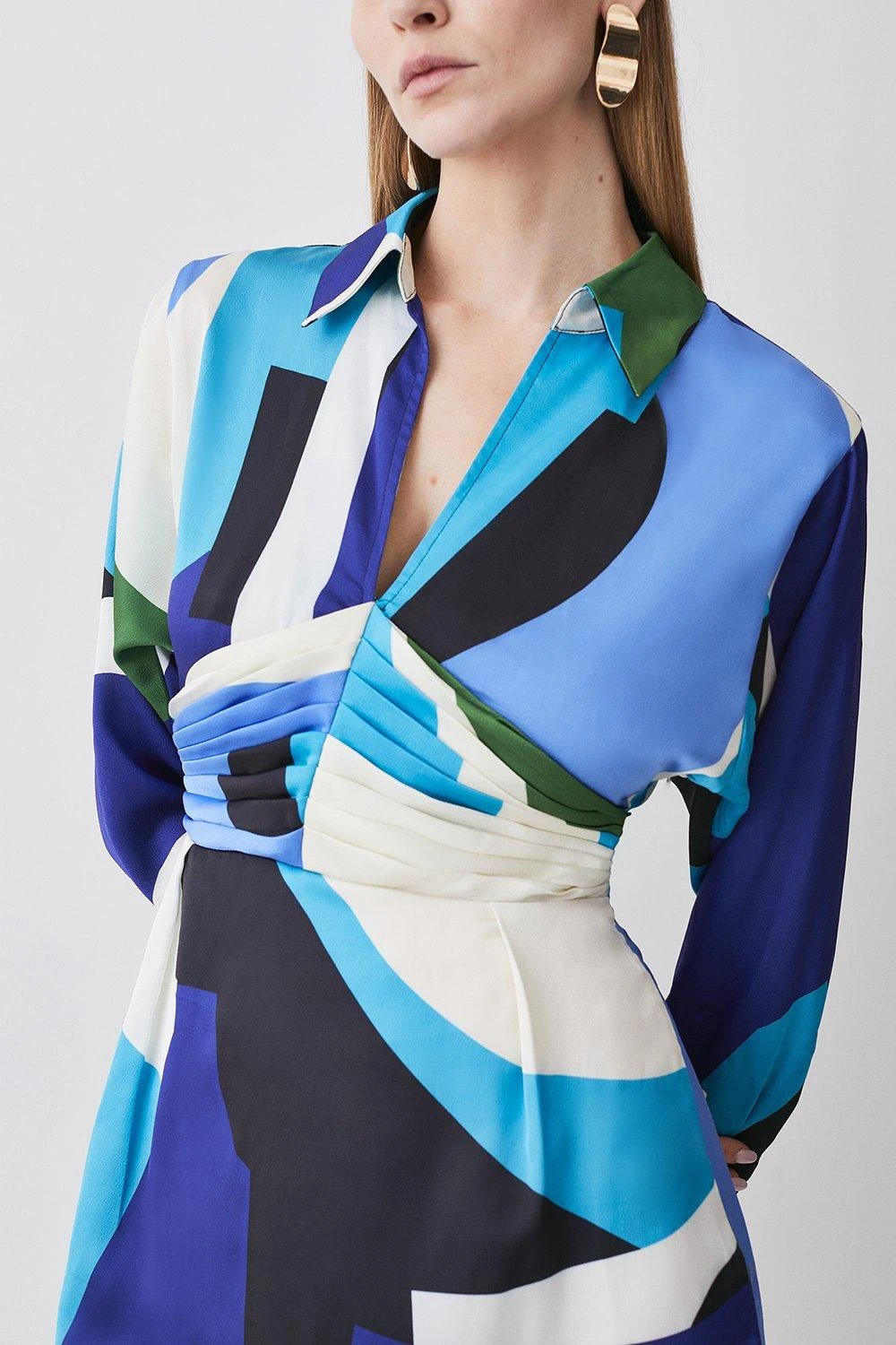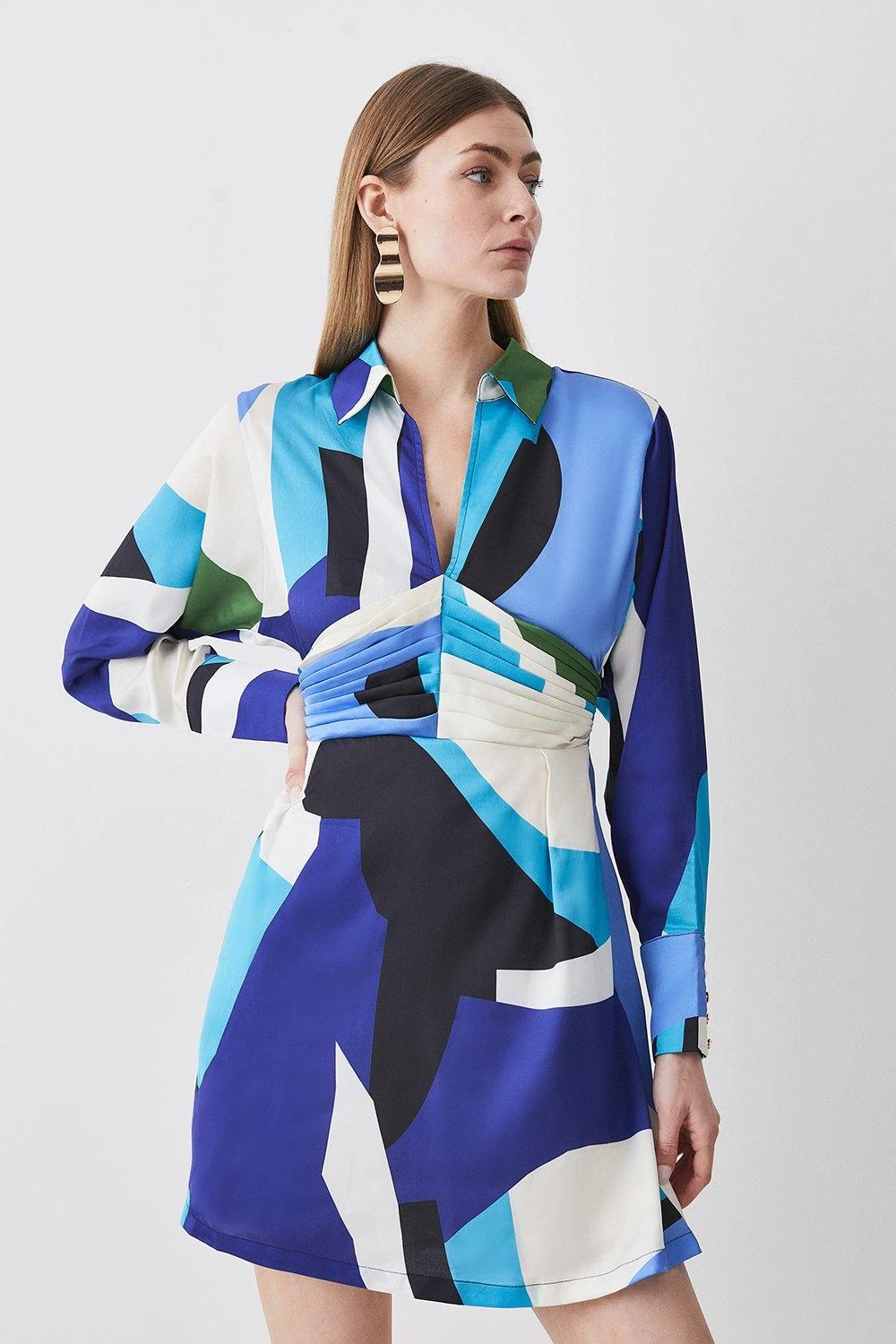 Karen Millen Abstract Colour Block Draped Satin Mini Dress