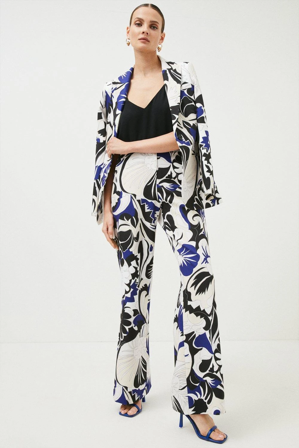 Embrace the power of a drama-filled pair of wide leg trousers with this bold printed design. In a flowing wide leg style, the sharp hues of this piece make a statement, especially when matched with the coordinating blazer.