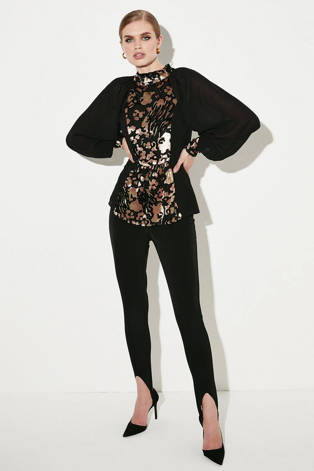This refined blouse is updated with fashion-first influence. Scintillating with a metallic animal devoré pattern, pair this billowing piece with polished hoops for a harmonious finish.