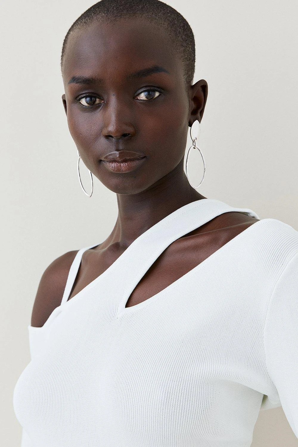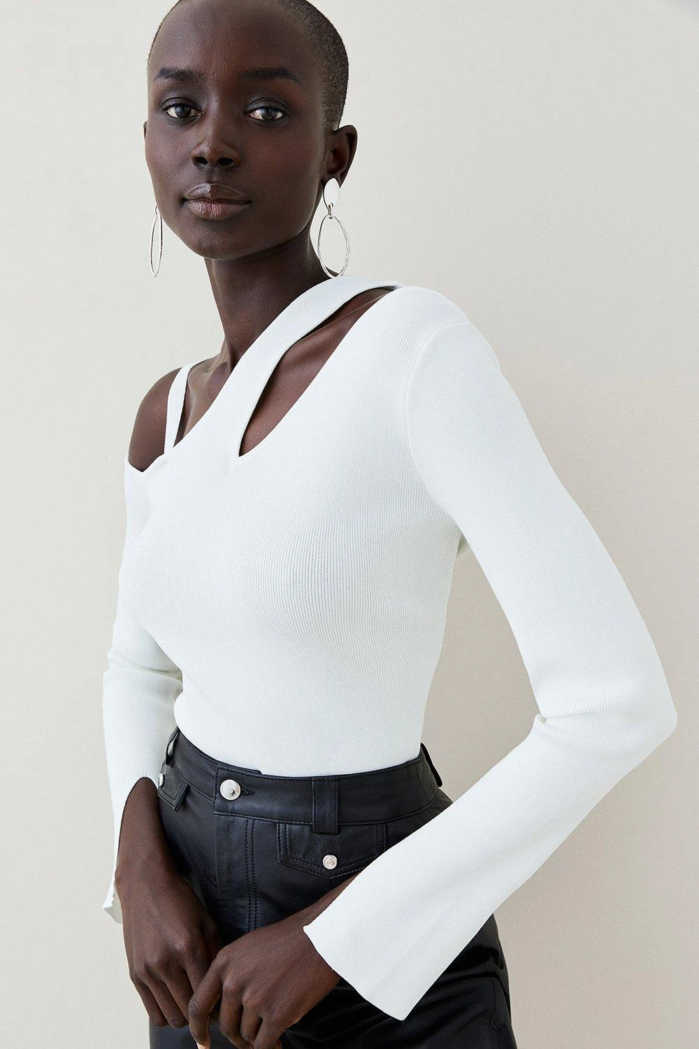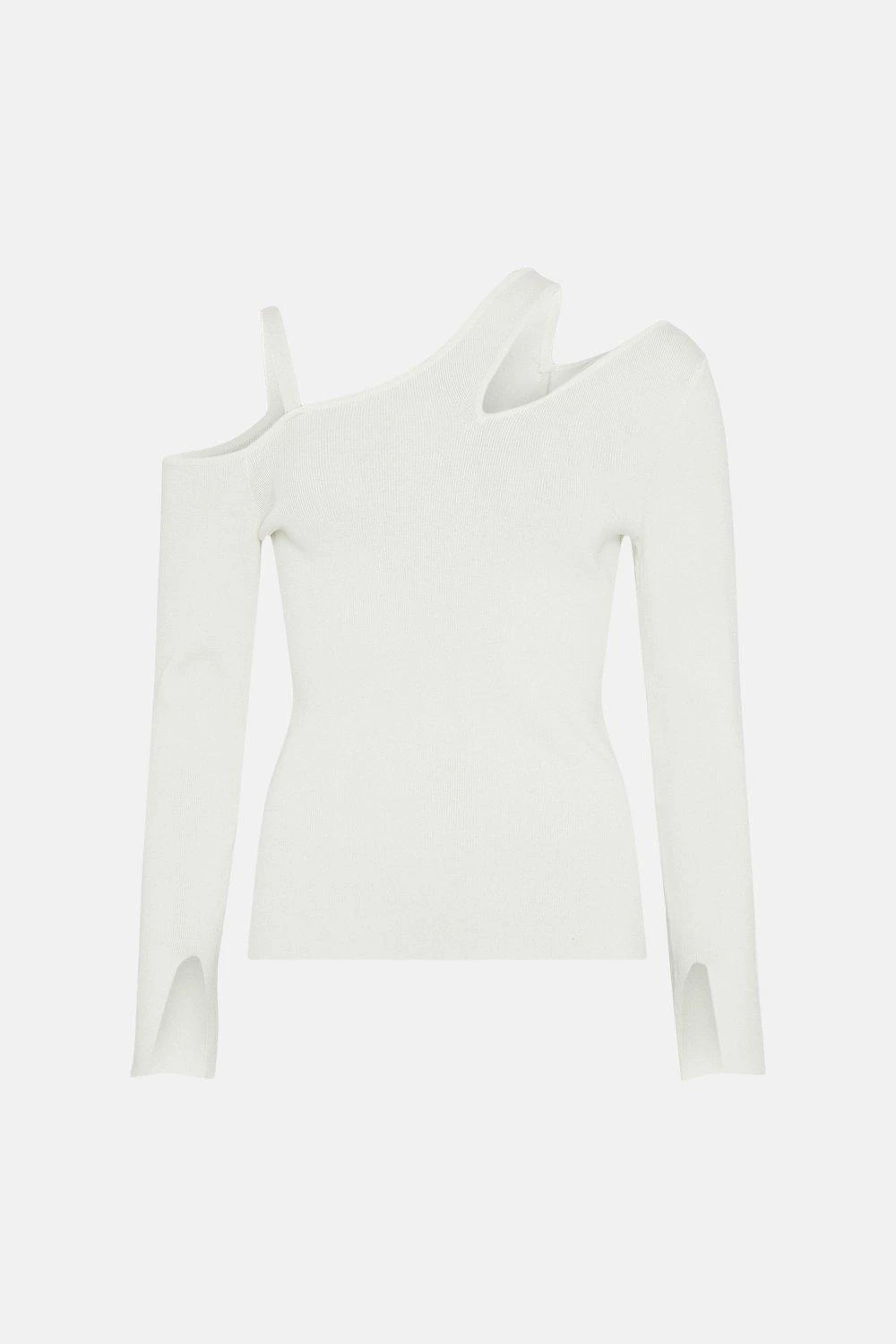 Elevate your signature pieces with this staple knitted jumper. Framed with a contemporary cutaway neckline, it has fashion-first asymmetric sleeves for a considered statement.