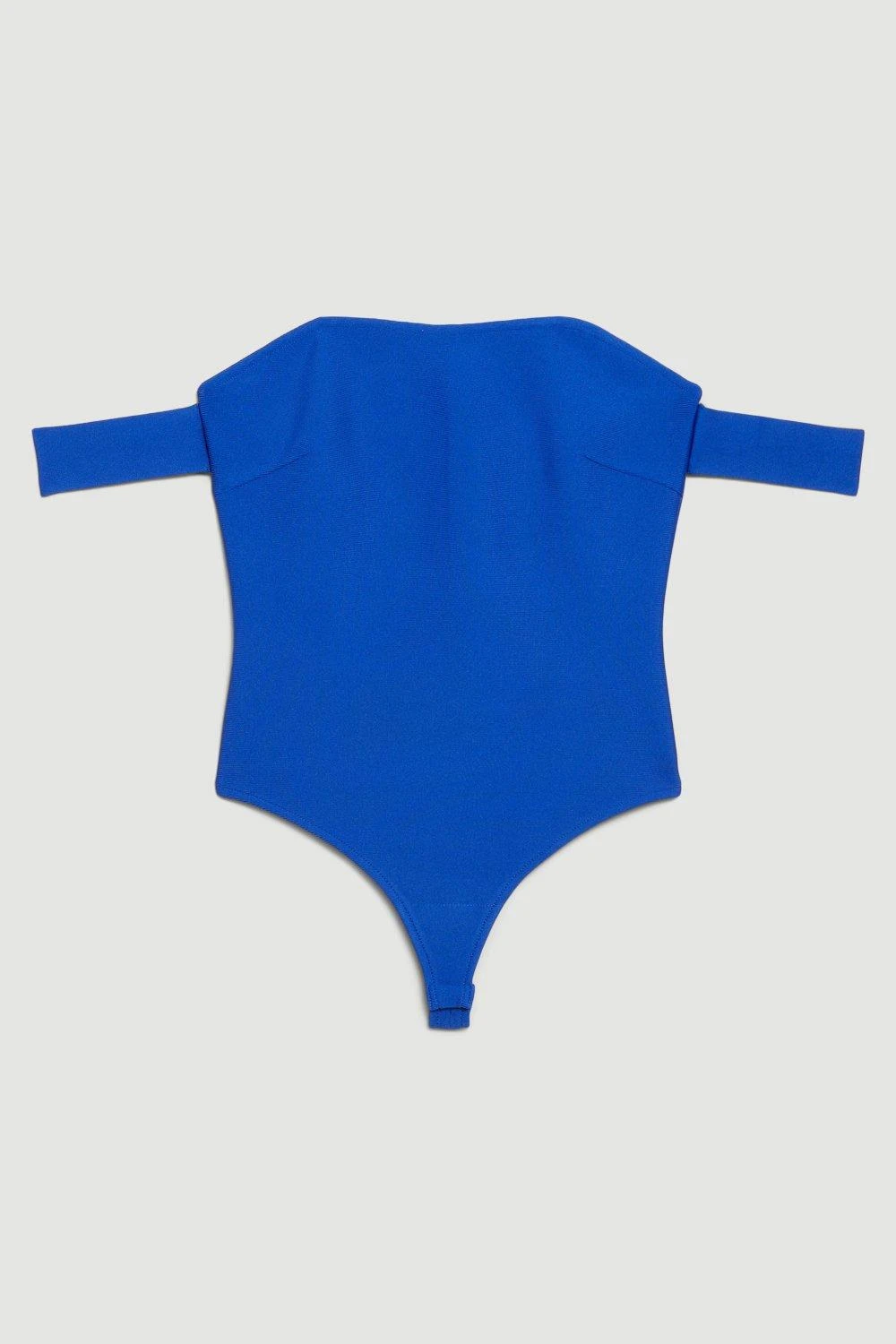 This subtly romantic design adds an elegant touch to capsule wardrobes. An off-the-shoulder neckline adds warm weather appeal to this bodysuit. Style this piece with wide leg tailored trousers for an instantly sophisticated ensemble.