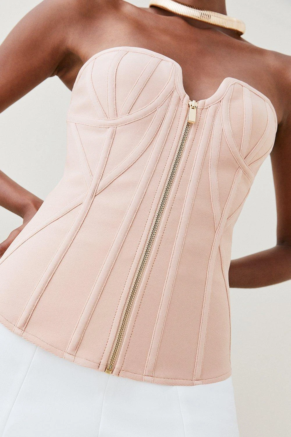 Harmonised with elegant elements, this fashion-first corset top is imbued with this season’s penchant for lingerie-inspired design. Tracing the form with contouring piping, pair with industrial gold jewellery for a considered texture clash.