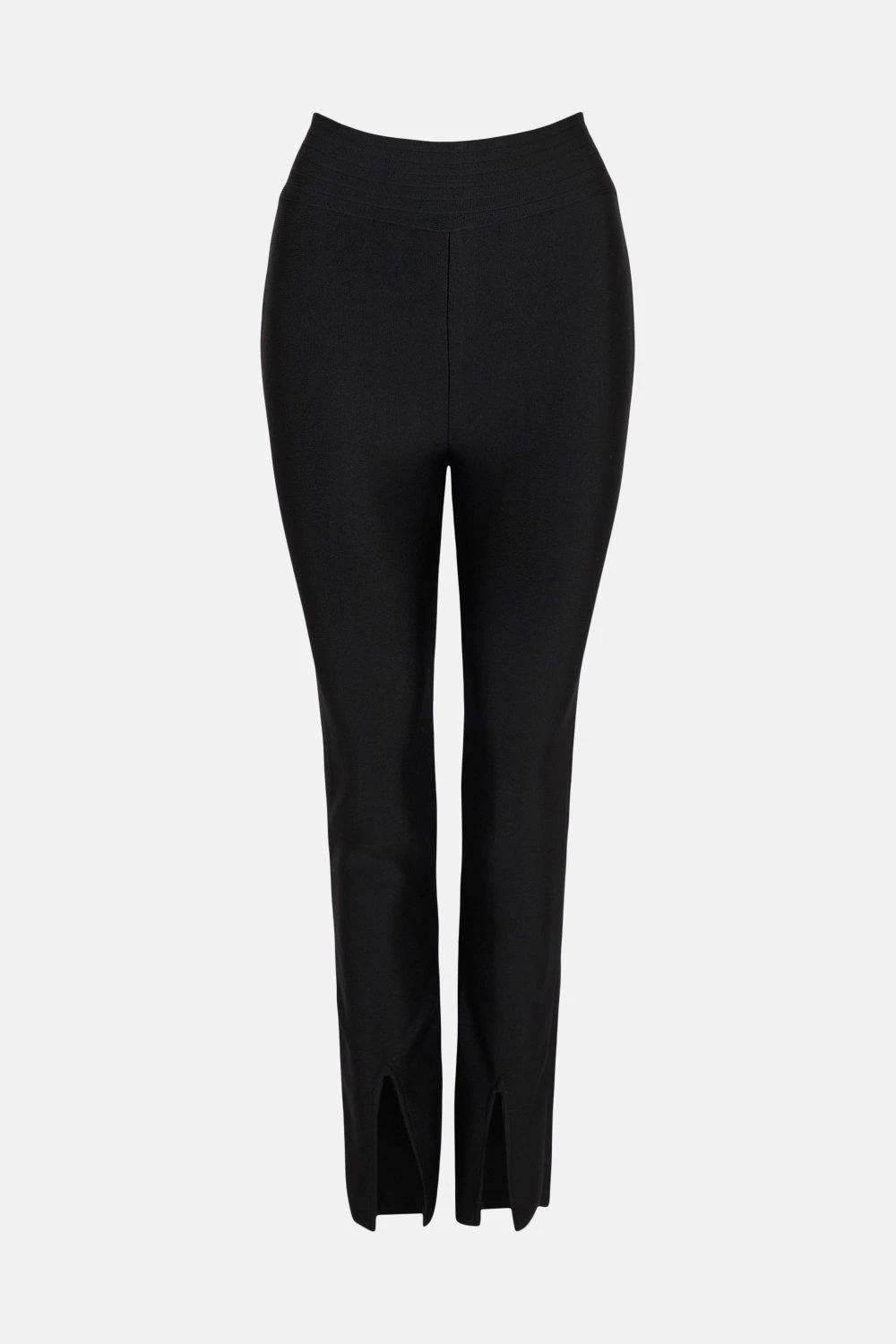 Composed of a sculpting bandage knit, the split hem trousers are crafted with timeless reverence. Appearing with a high-rise silhouette, they land at vented hems – calling to be paired with soaring stilettos for a polished finish.
