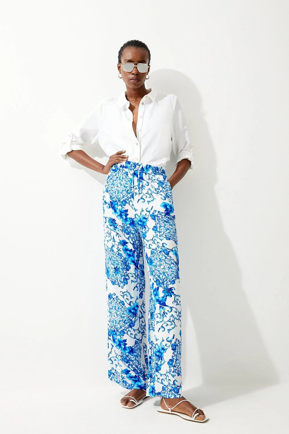 Detailed with an opulent Baroque print, these wide-leg trousers are an instant summer staple. Style this pair with a cami top and oversized blazer for an elevated warm-weather ensemble.