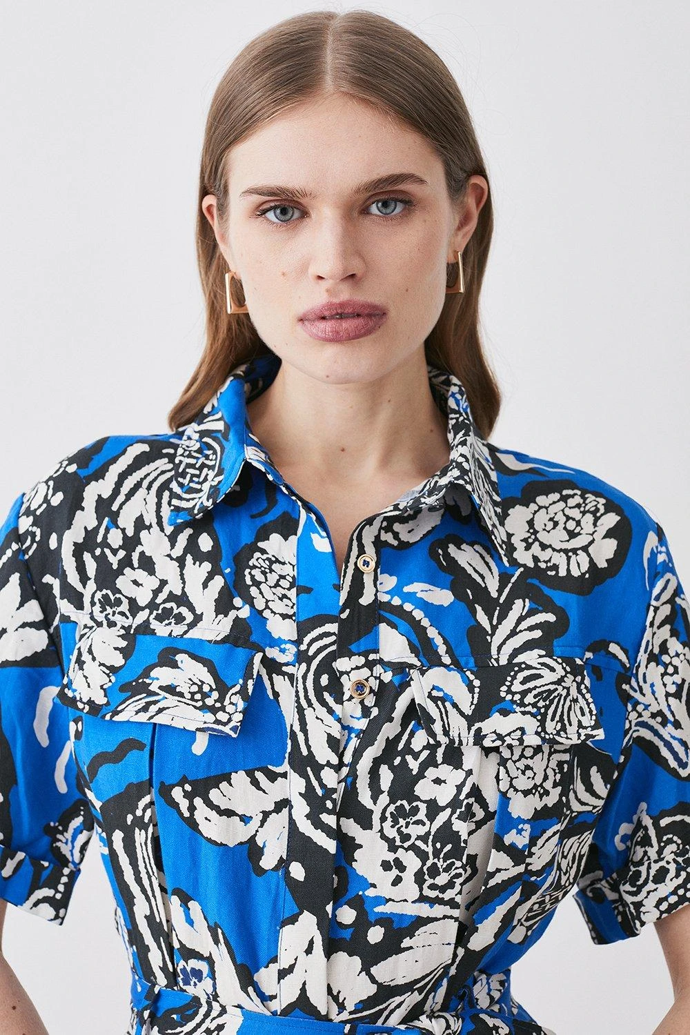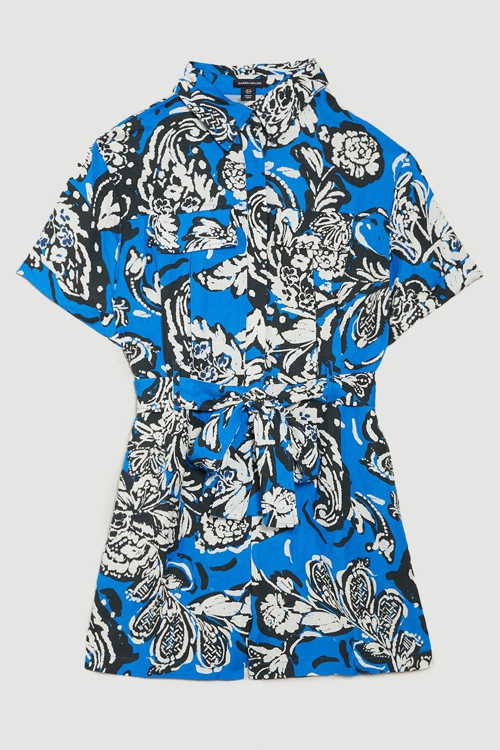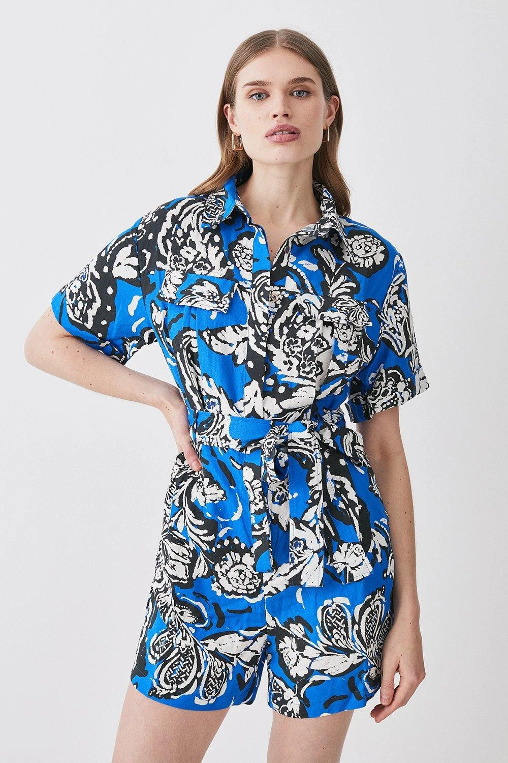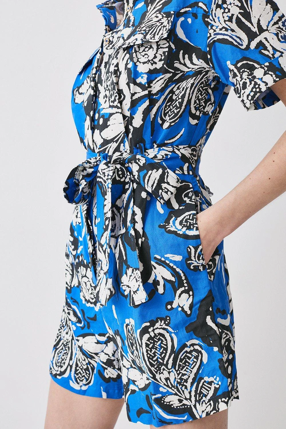 Karen Millen Batik Viscose Linen Belted Playsuit