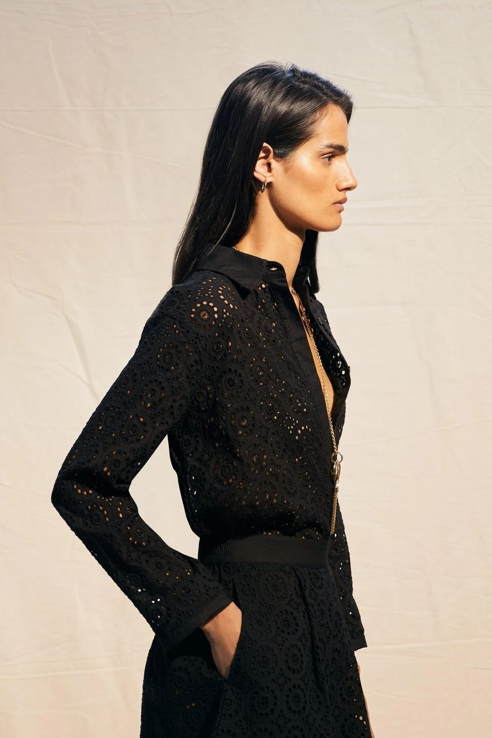 Crafted with broderie anglaise embroidery, this beach shirt exudes elegant appeal. Perfect for layering over swimwear, this shirt makes the perfect addition to a holiday collection.