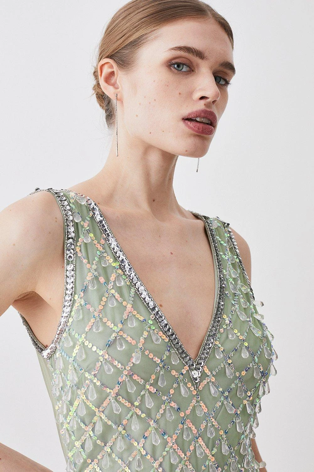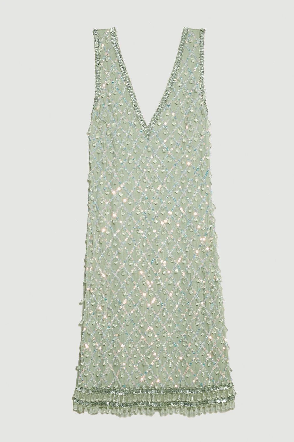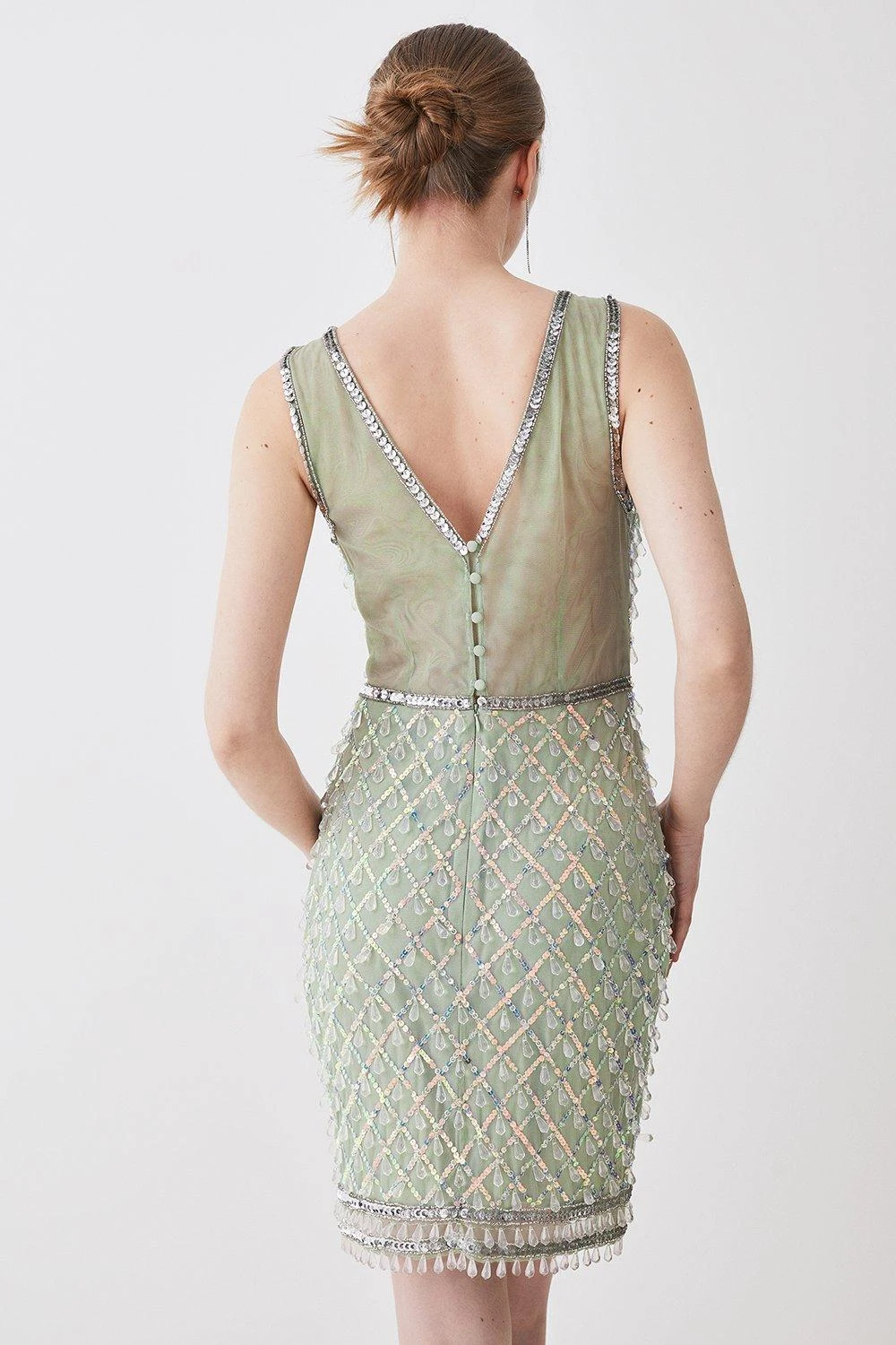 Karen Millen Beaded Embellished Irridecent Mini Dress