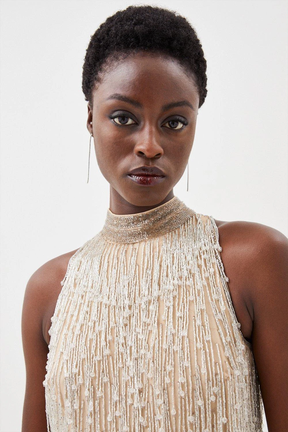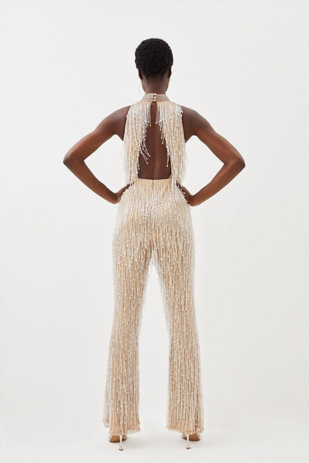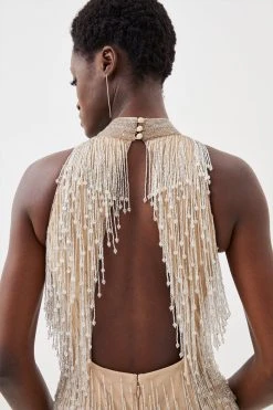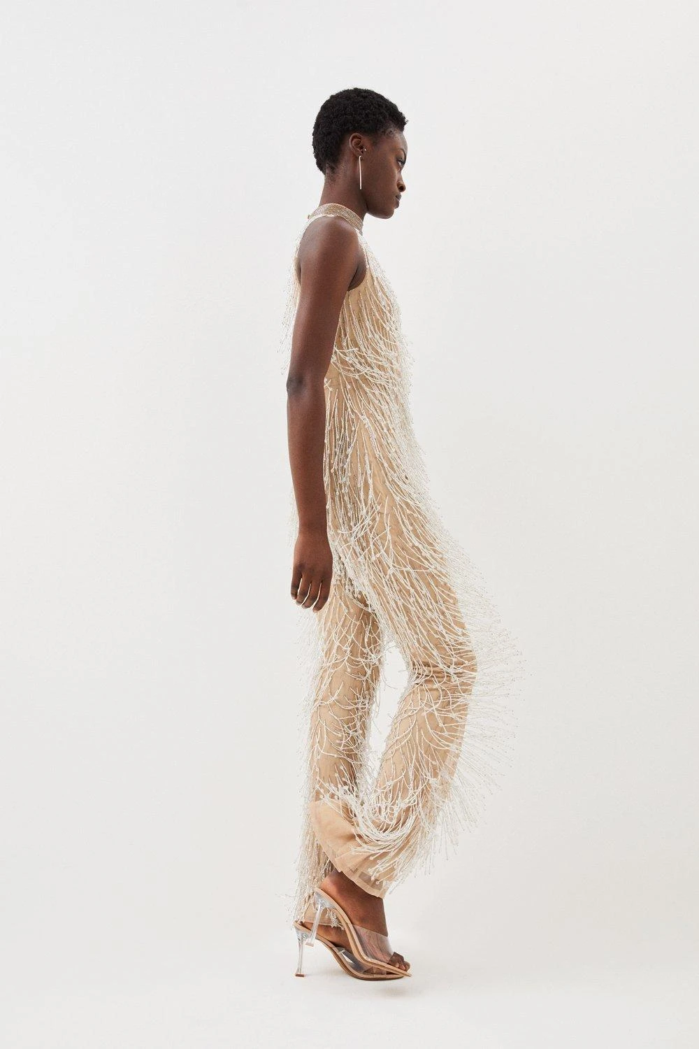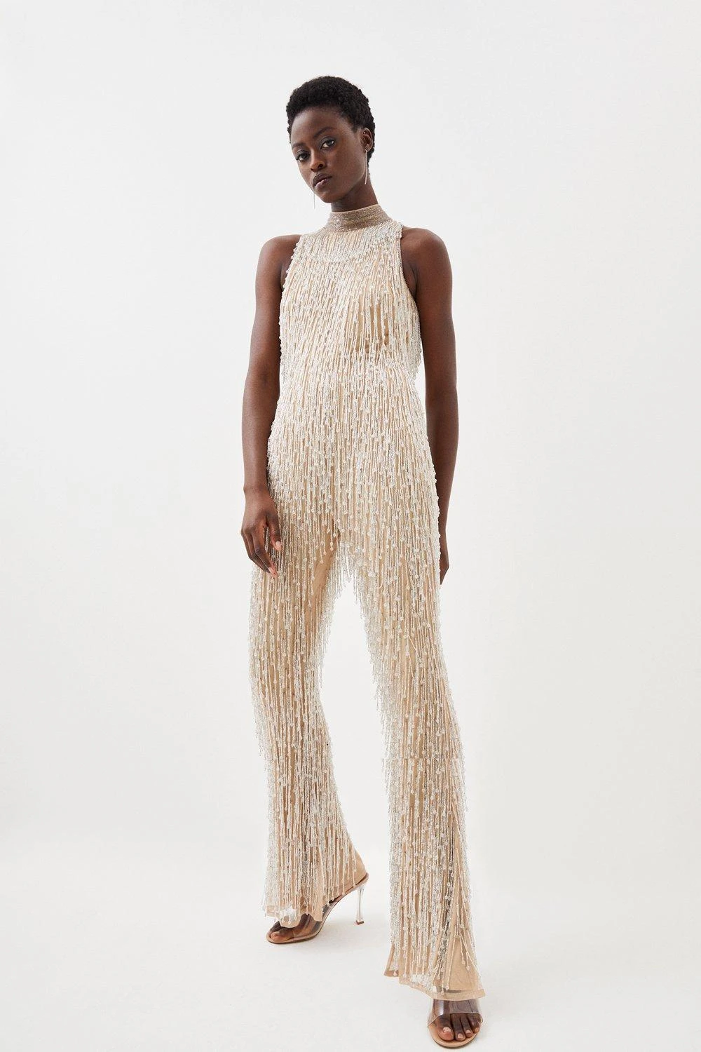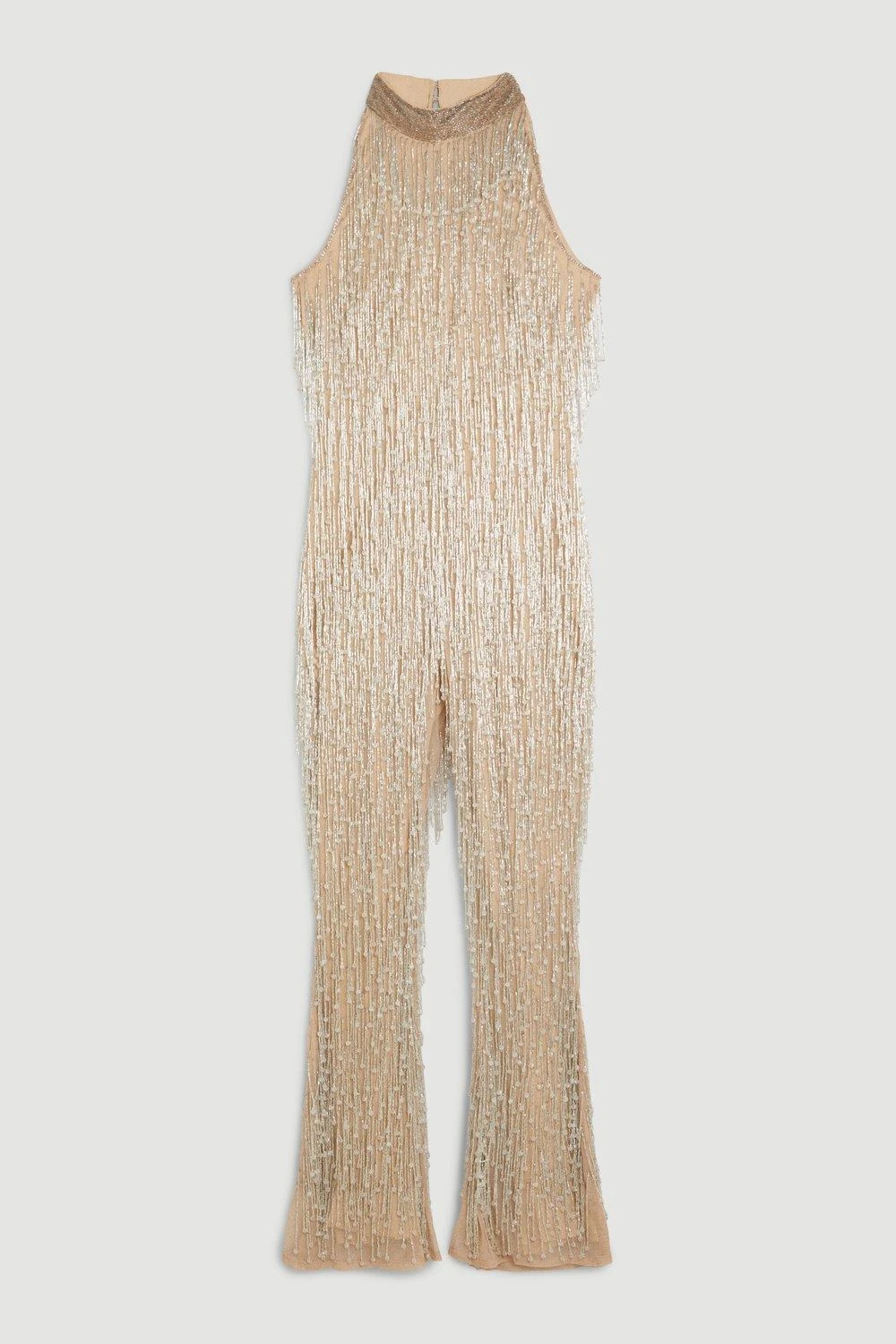 Karen Millen Beaded Fringed Halter Embellished Jumpsuit