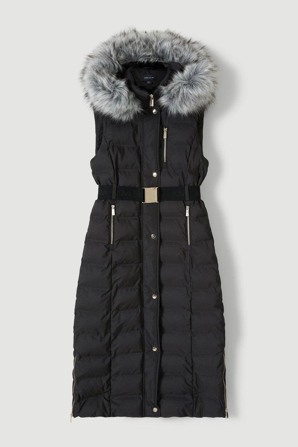 Outer: 24% Recycled Polyester, 76% Polyester. Lining: 100% Recycled Polyester. Fur Trim: 88% Modacrylic, 12% Polyester. Do Not Dry Clean. Model wears UK 8/US 4. Model height: 5″9. Length measurement: 117cm.