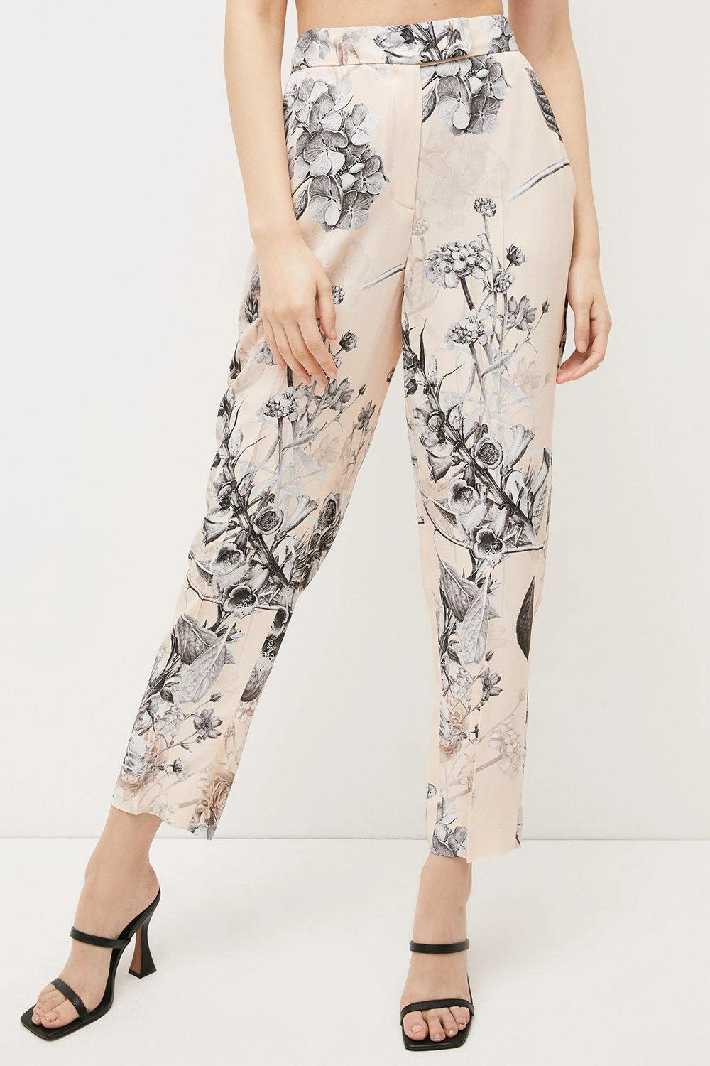 Get into the swing of fresh spring/summer styling with these beautifully patterned trousers. Spun from satin crepe for a sense of fluidity, they show off a hand-drawn hydrangea print, created with the botanical artist Rui Jiang, along with a high-rise waistband and relaxed leg fit. Hitting the ankles at the perfect point to frame summers strappy heels, they add feminine allure to any occasion in your diary.