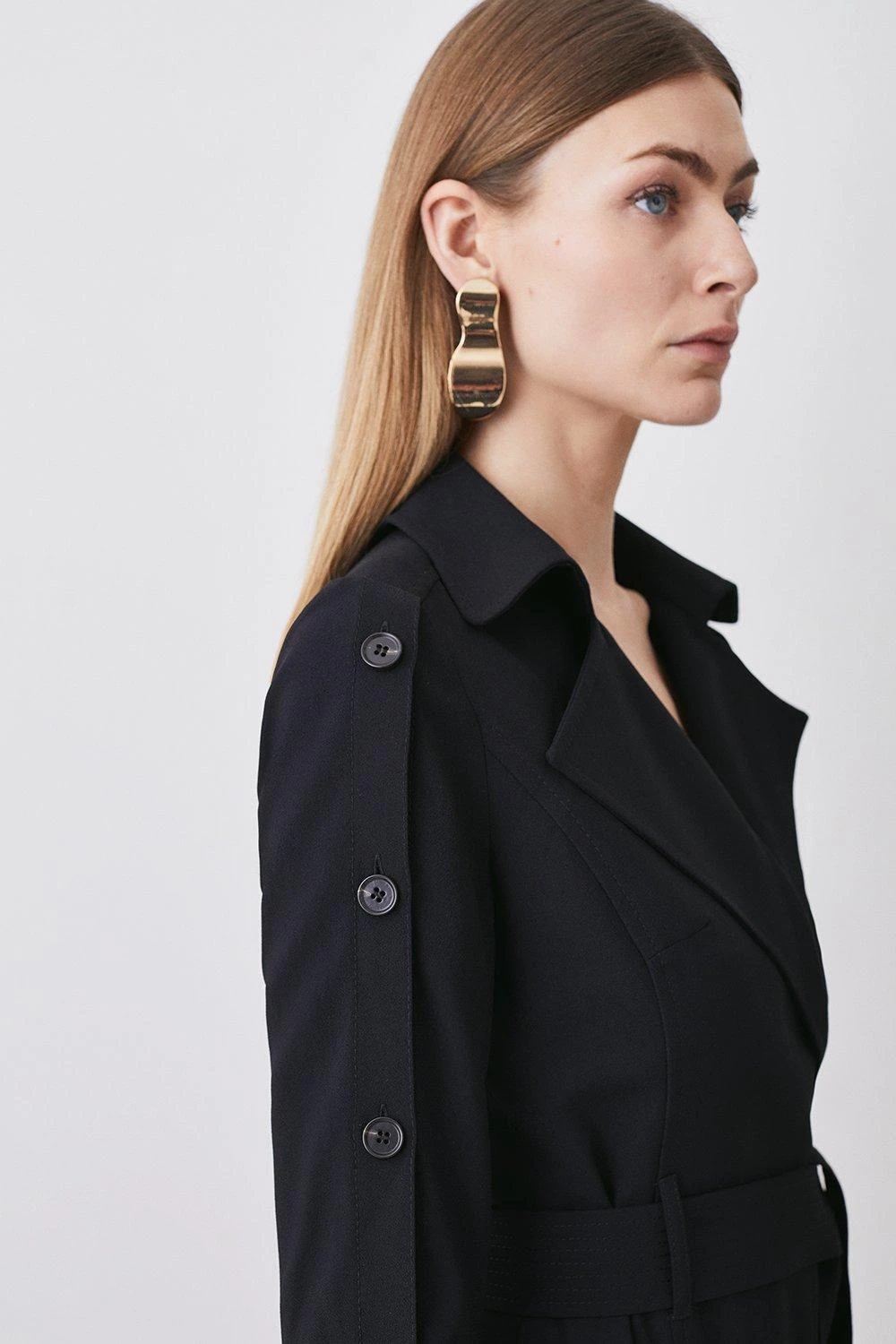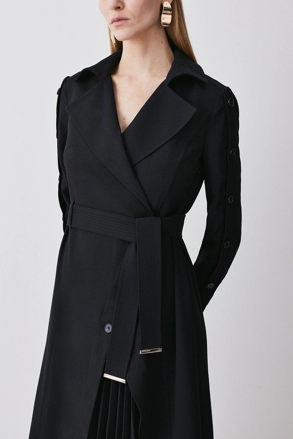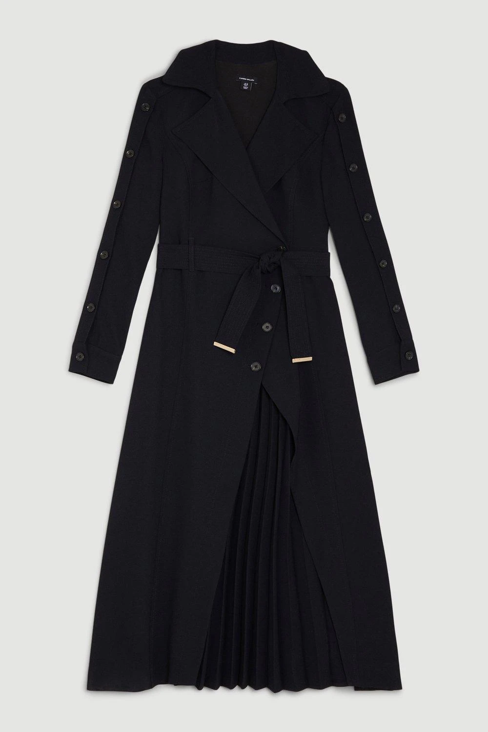 Main: 100% Polyester. Lining: 100% Polyester. Dry clean only. Belt included. Model wears UK 8/US 4. Model height: 5”9. Length measurement: 127cm.