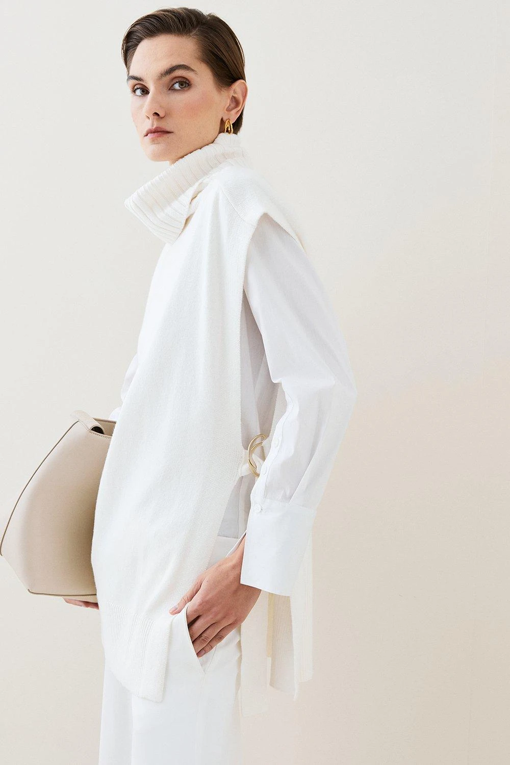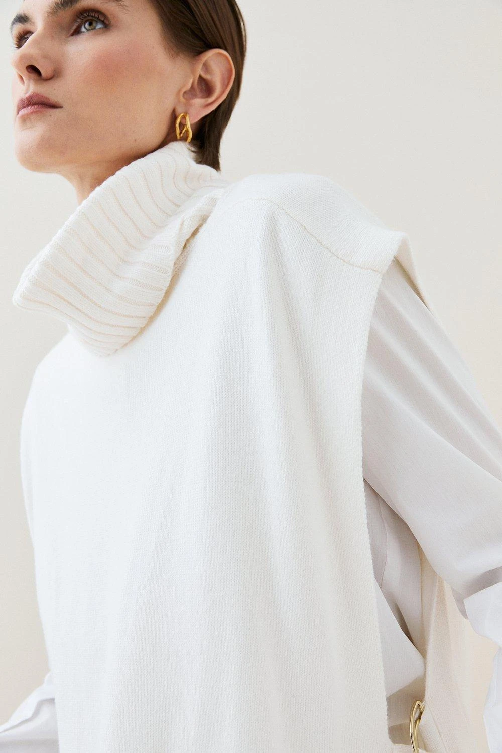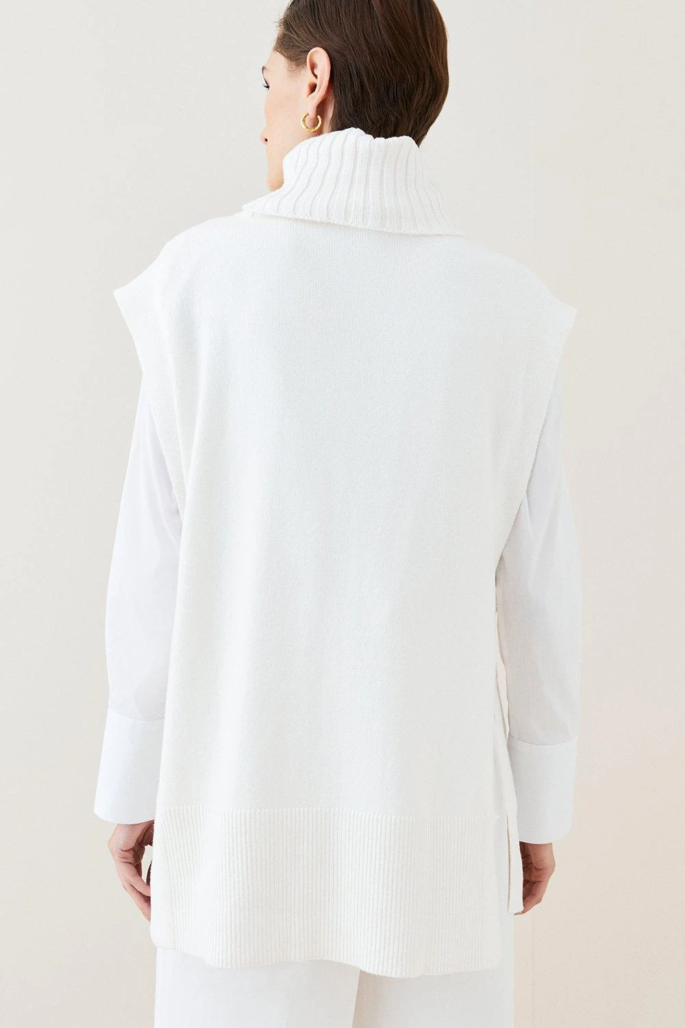 Lend your knitwear a modern take with this knitted rollneck gilet. Versatile and timeless, it can be styled by itself as a top or worn over a base layer. Regardless of your styling choice, it ensures a polished look.