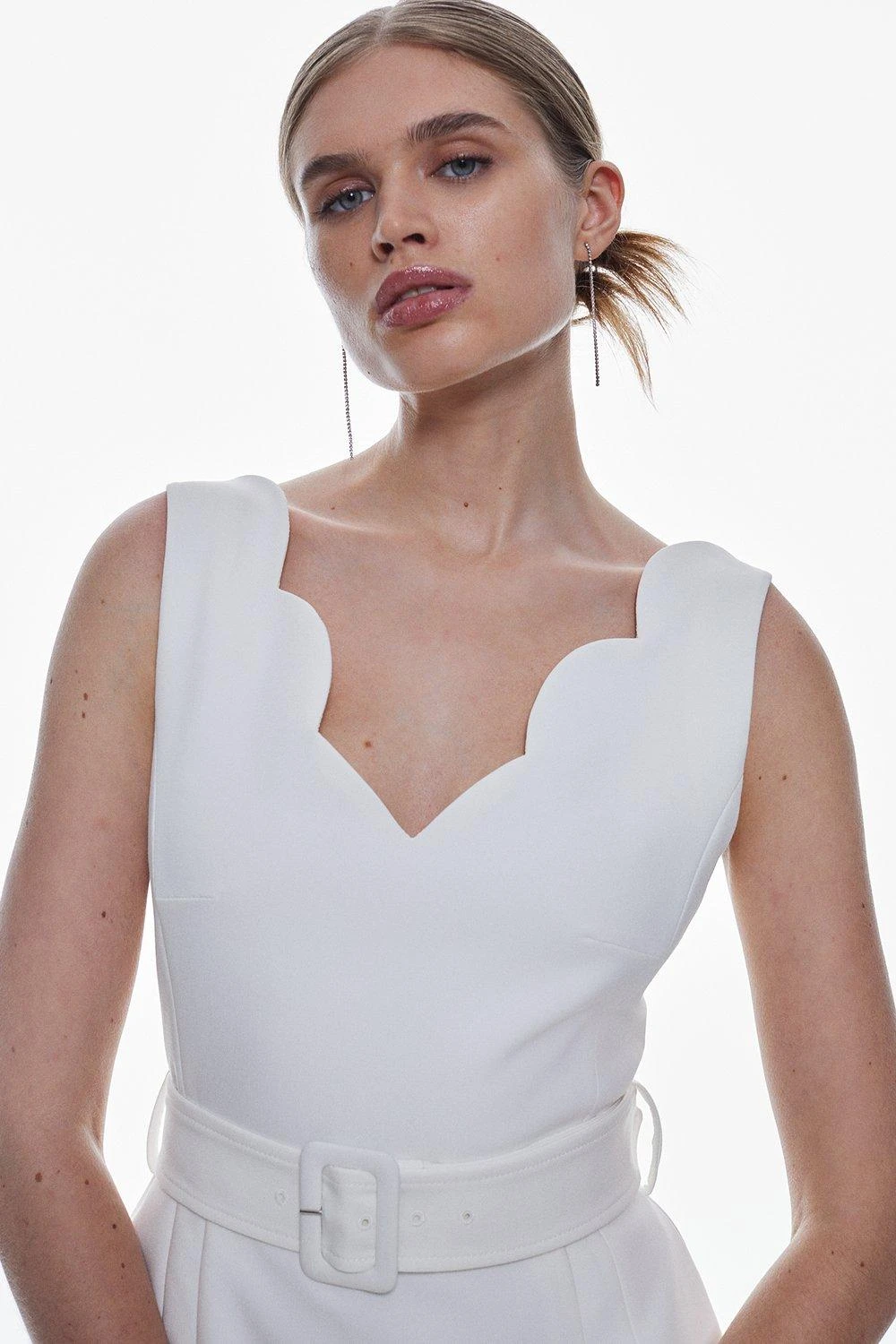 Karen Millen Clean Tailored Scallop Detail Midi Dress