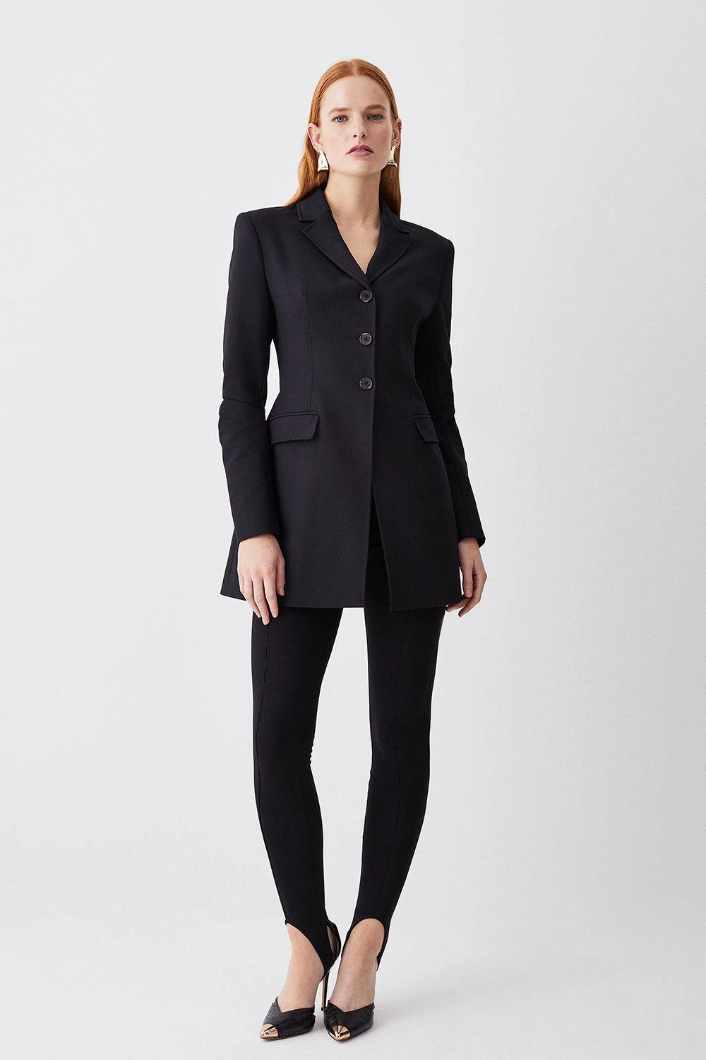 49% polyester 25% recycled polyester 19%viscose/rayon 7%elastane/spandex Lining: 100% polyester . Dry clean only Model Height 5”10 – Model wears a UK 8/US Size 6. centre back length 40cm