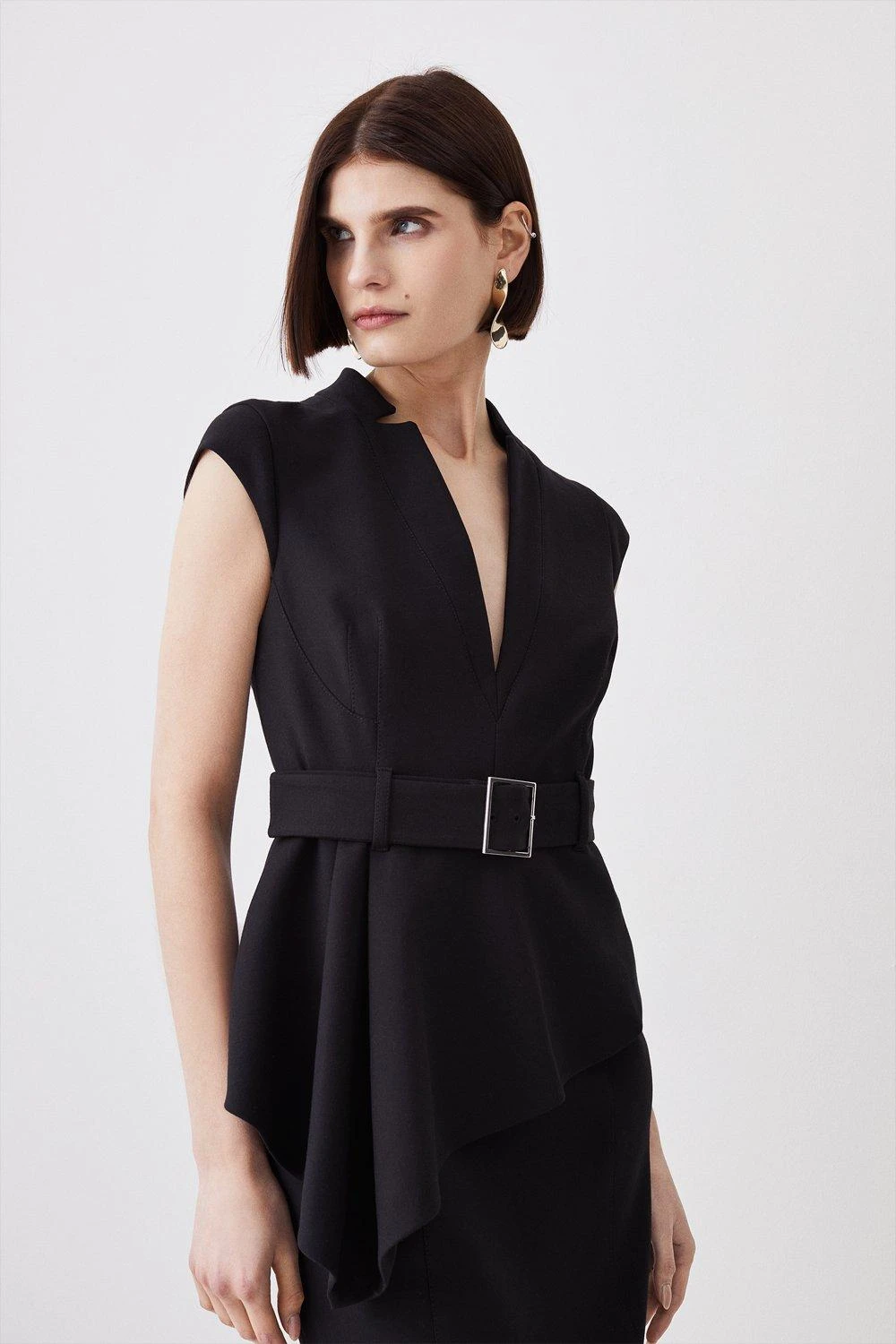 Karen Millen Compact Stretch Belted Asymmetric Drape Detail Midi Dress
