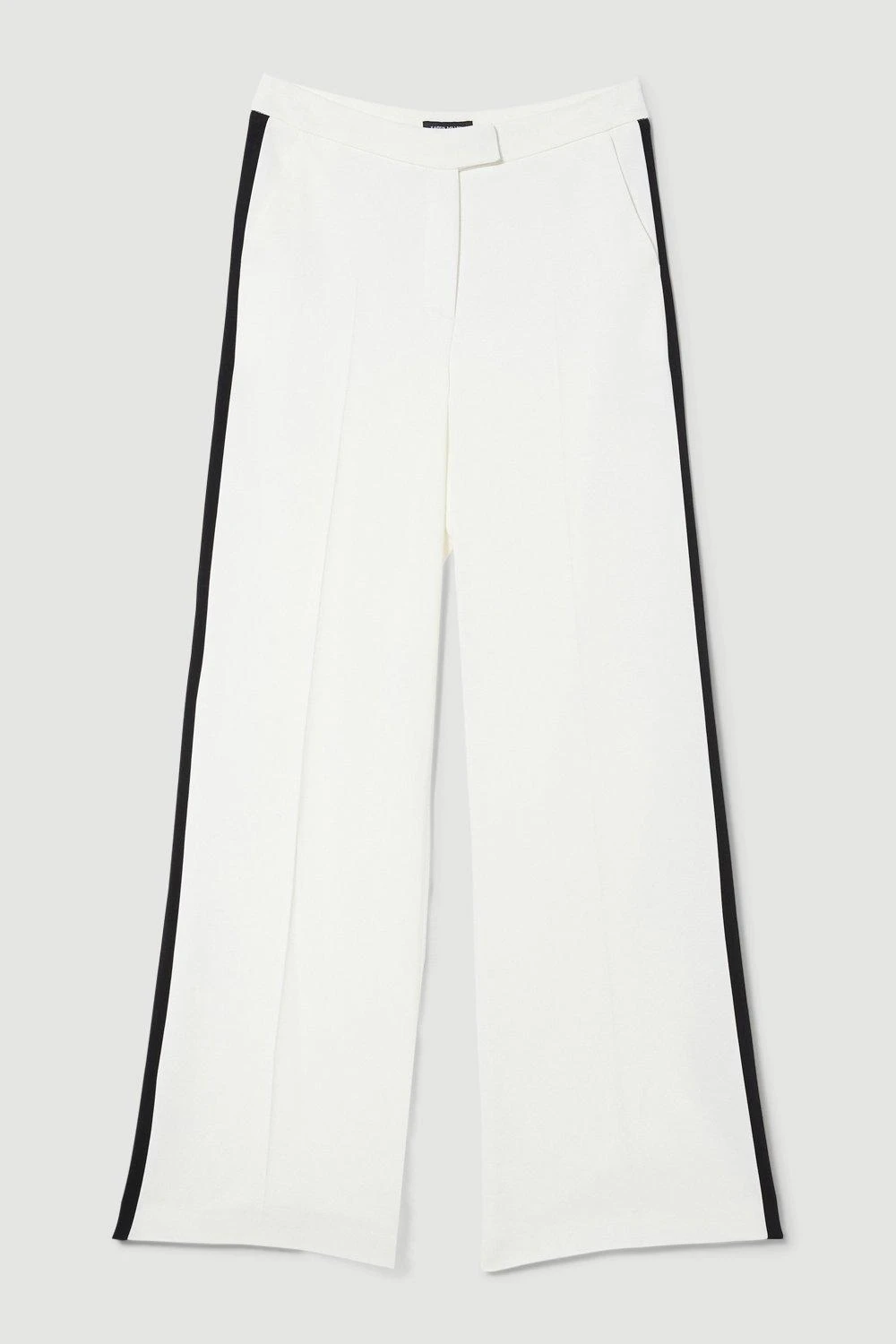 Crafted in a two-tone monochrome design, these wide-leg trousers exude contemporary appeal. A wide-leg design provides a flattering fit, while a black side panel provides a polished finish. Style with the co-ordinating blazer jacket for a sophisticated look.
