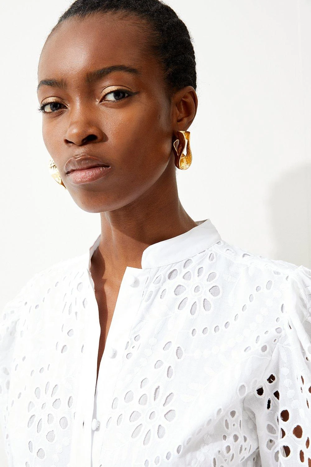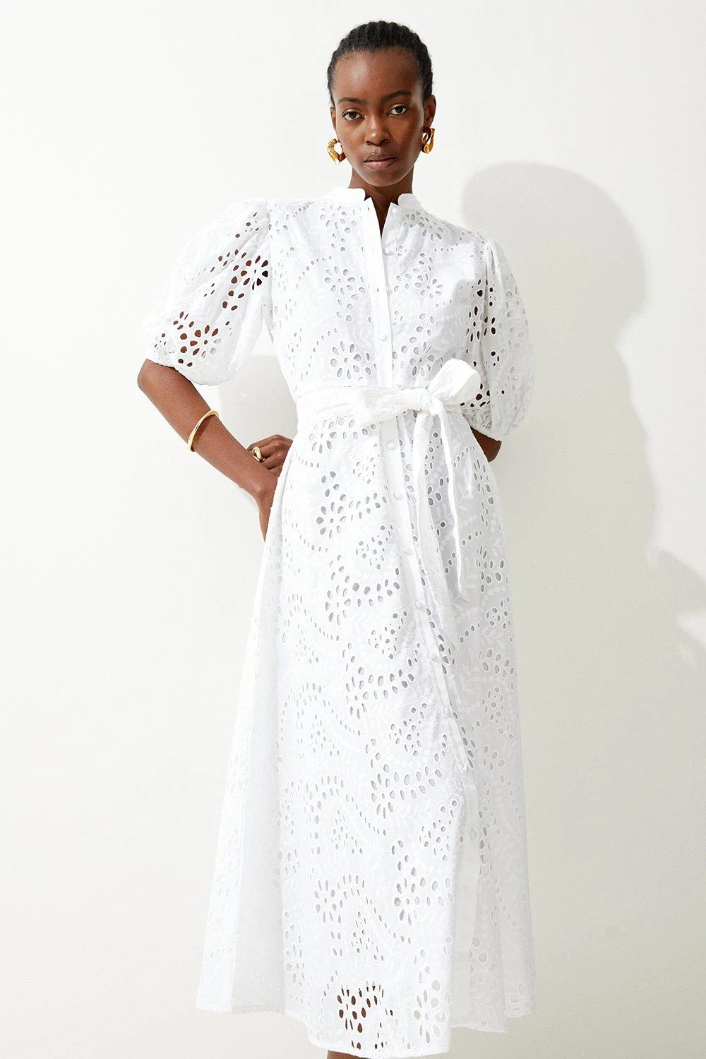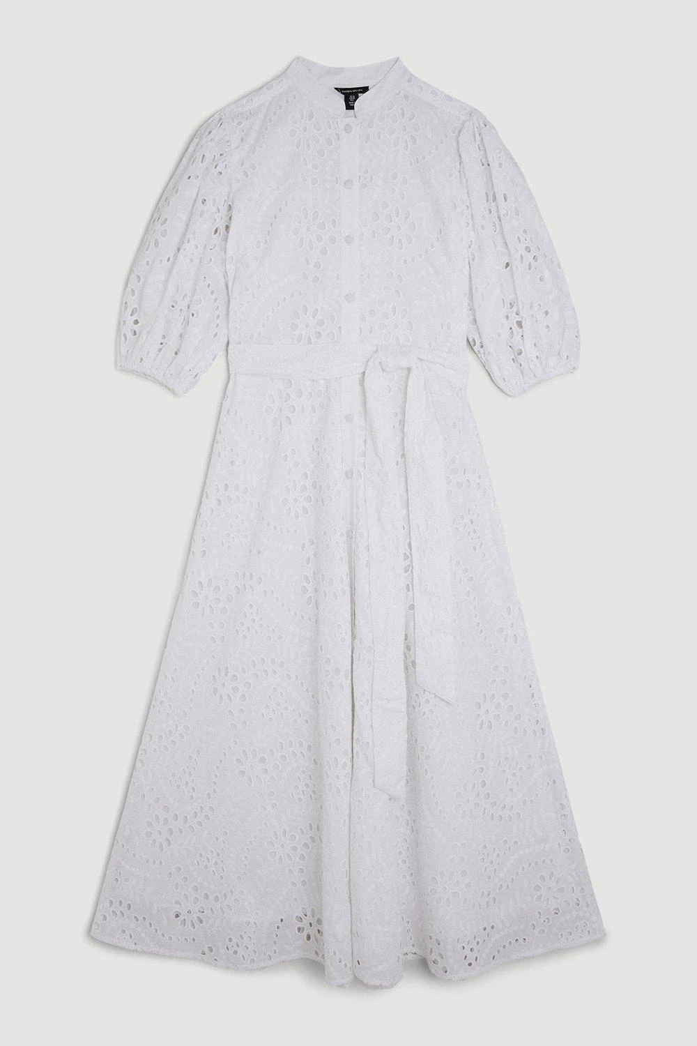 Karen Millen Cotton Broderie Belted Woven Midi Dress