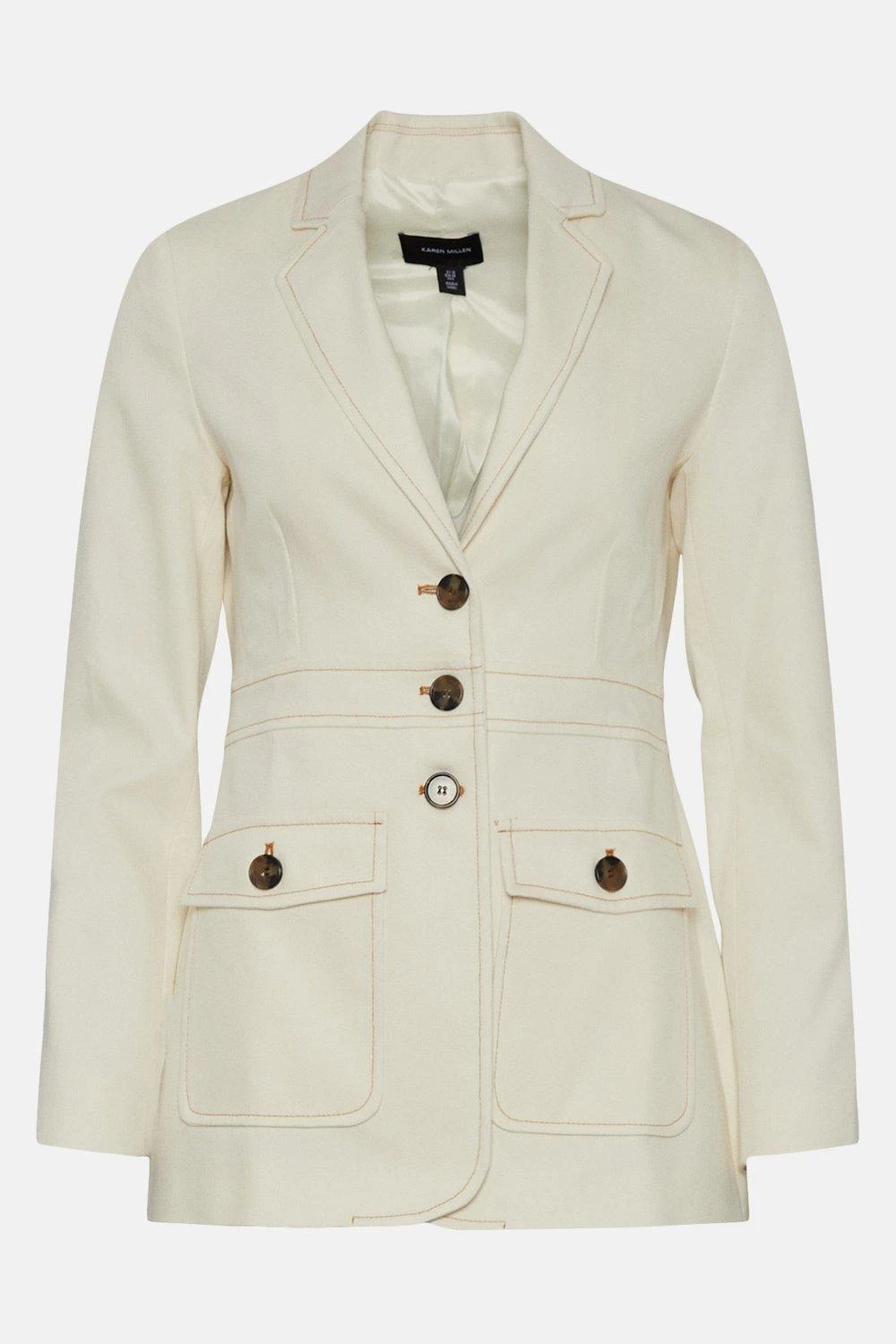 Safari meets utility on this on-trend cotton-blend jacket. Gently cinching the figure thanks to its banded waist and single-breasted buttons, it brings sharp tailoring into SS22. Roomy patch pockets complete with buttons add a final practical flourish to this work-appropriate piece.
