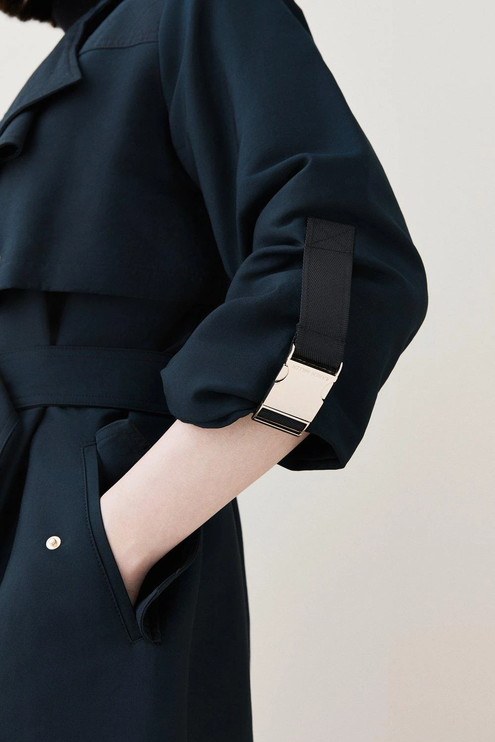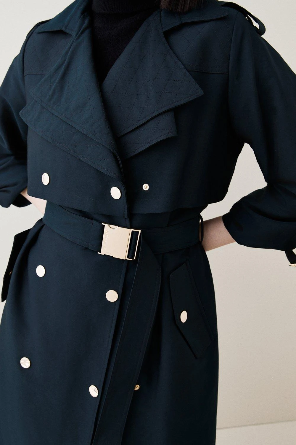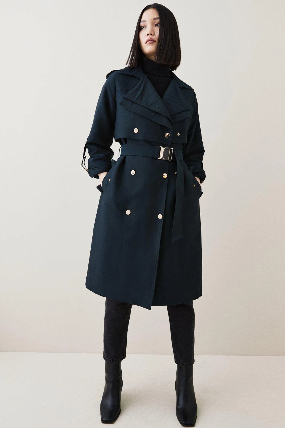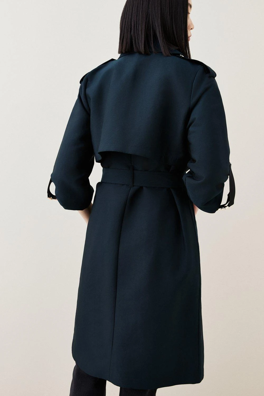 Showcasing a classic silhouette with intricate details, this trench coat makes a sophisticated choice for a multitude of occasions. A storm flap, military belt details, notched lapels and shoulder epaulettes give this piece a premium feel, while classic flap pockets offer practicality.