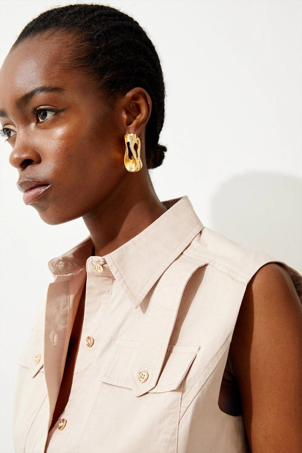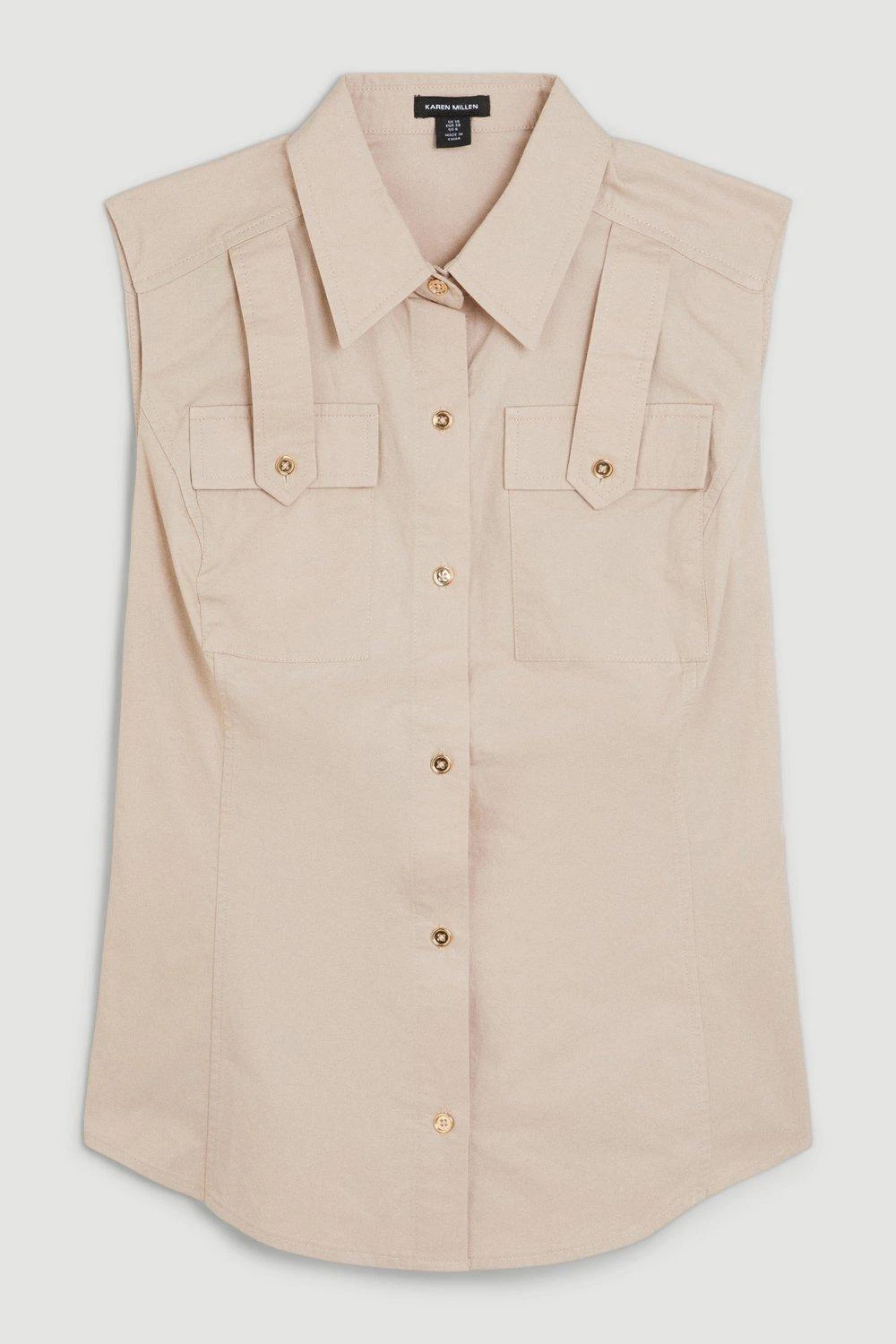 Karen Millen Cotton Sateen Utility Pocket Sleeveless Shirt