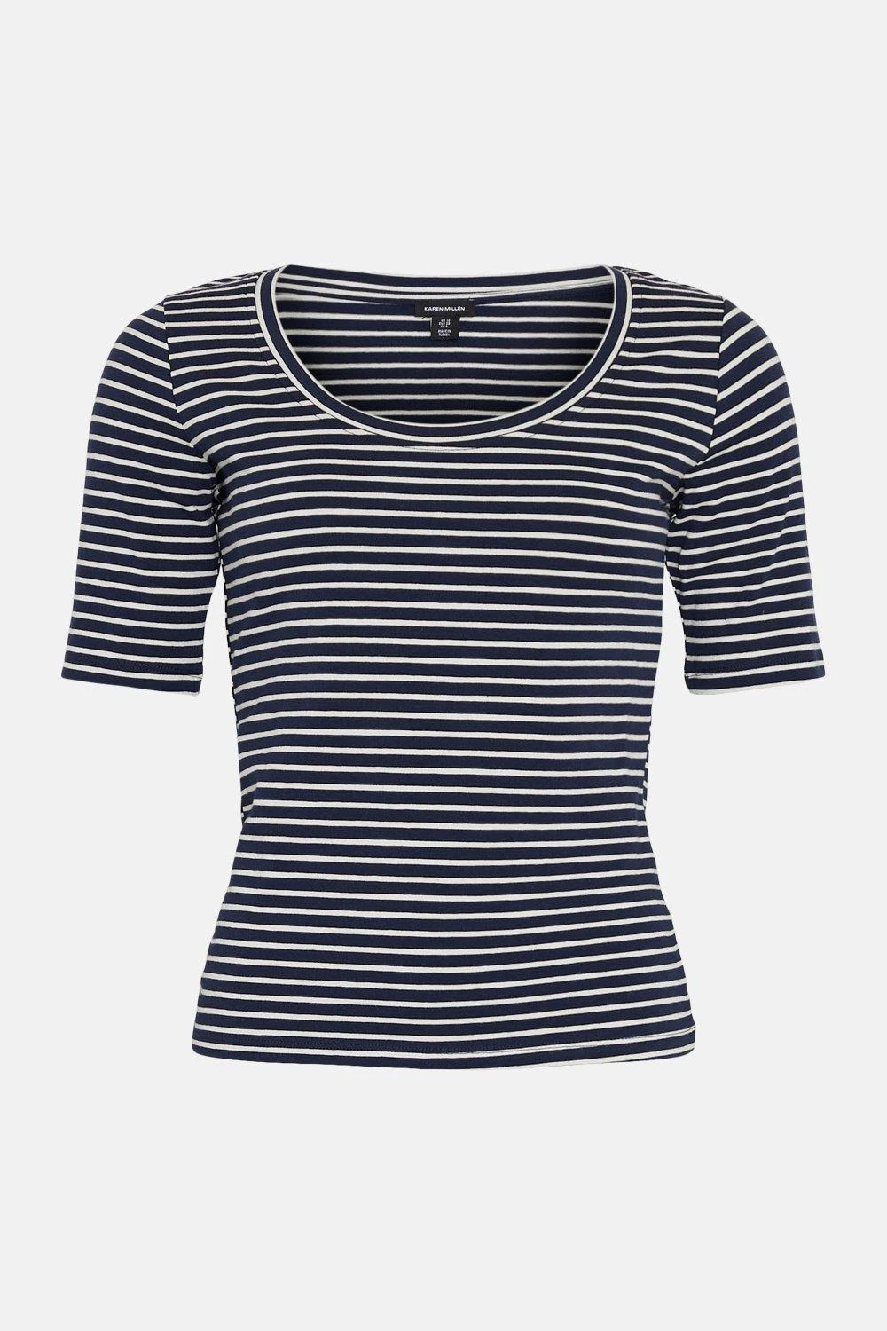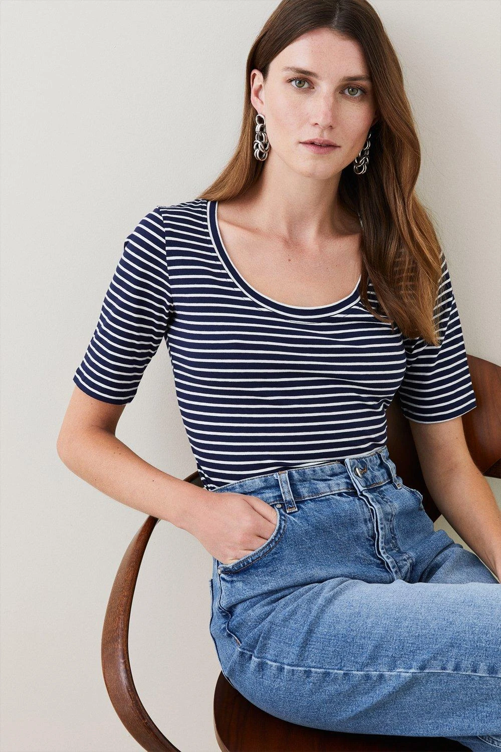 This hero pieces exudes a classic and carefree aesthetic. Horizontal stripes and three-quarter sleeves add a distinctively timeless touch.