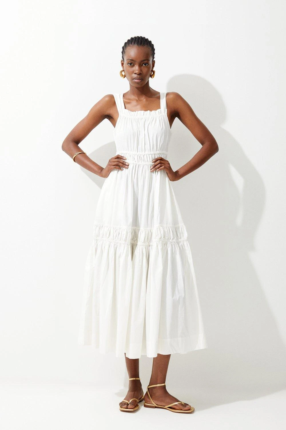 Karen Millen Cotton Tiered Strappy Maxi Dress