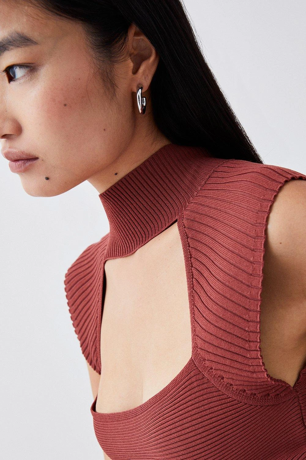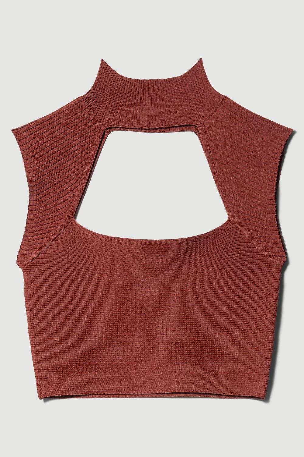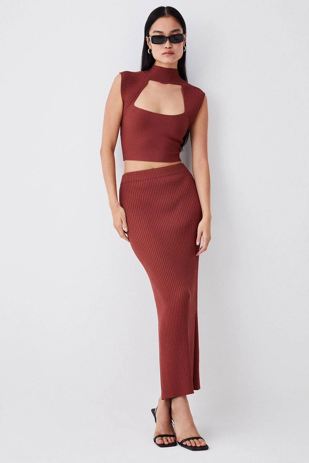 Crafted from cosy rib-knit, this crop top lends itself perfectly to both formal and casual occasions. A contemporary cut-out detail creates a flattering effect, style this top with the co-ordinating knit skirt for a refined look.