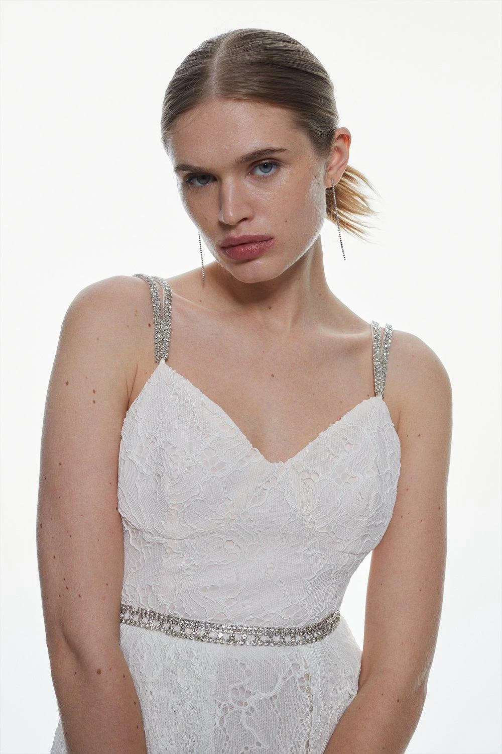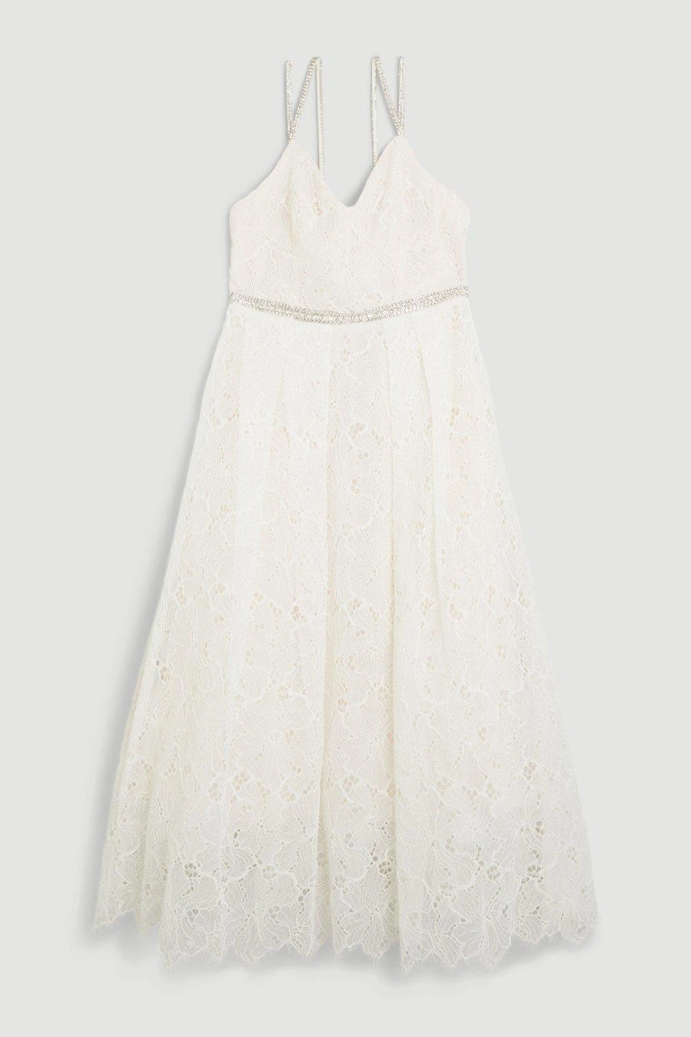 Karen Millen Diamante Trim And Lace Strappy Prom Dress