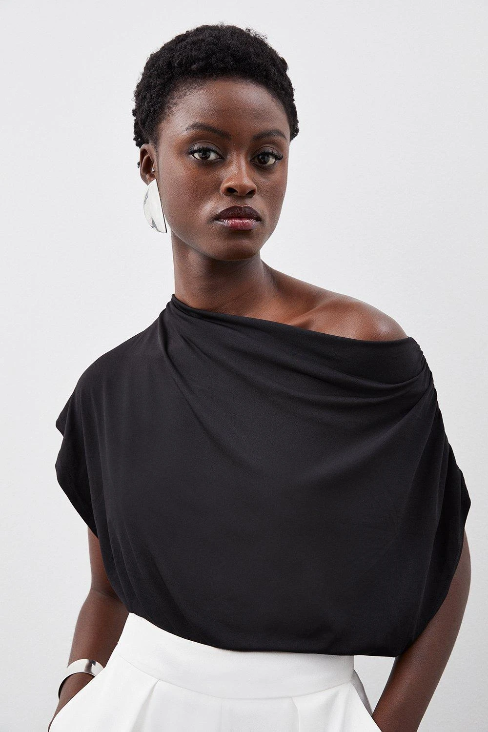 Karen Millen Draped Shoulder Trim Jersey Bodysuit