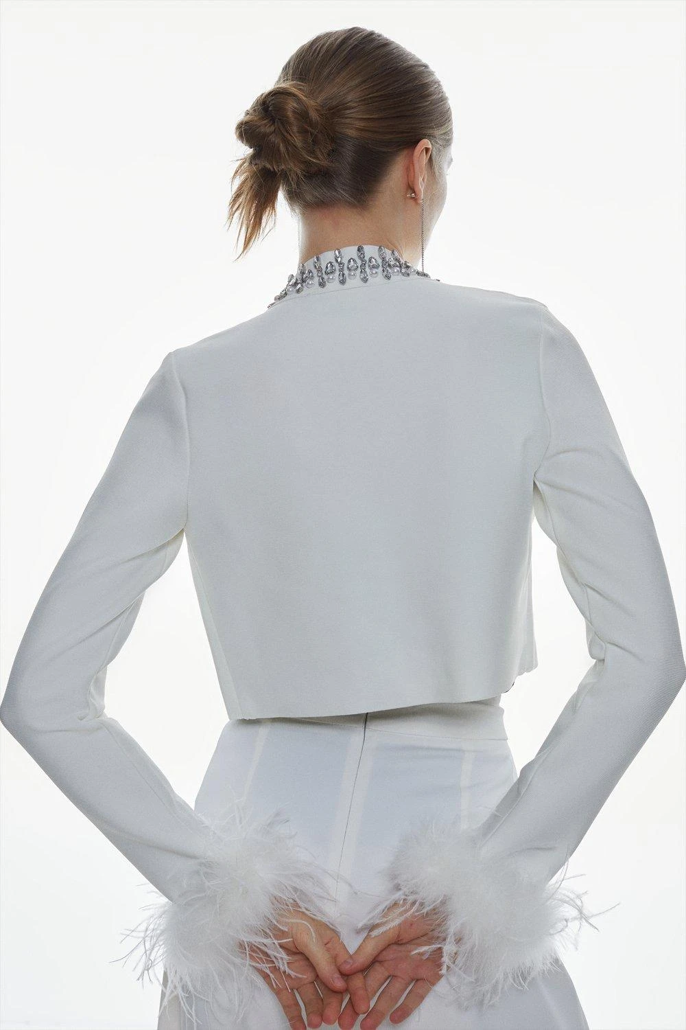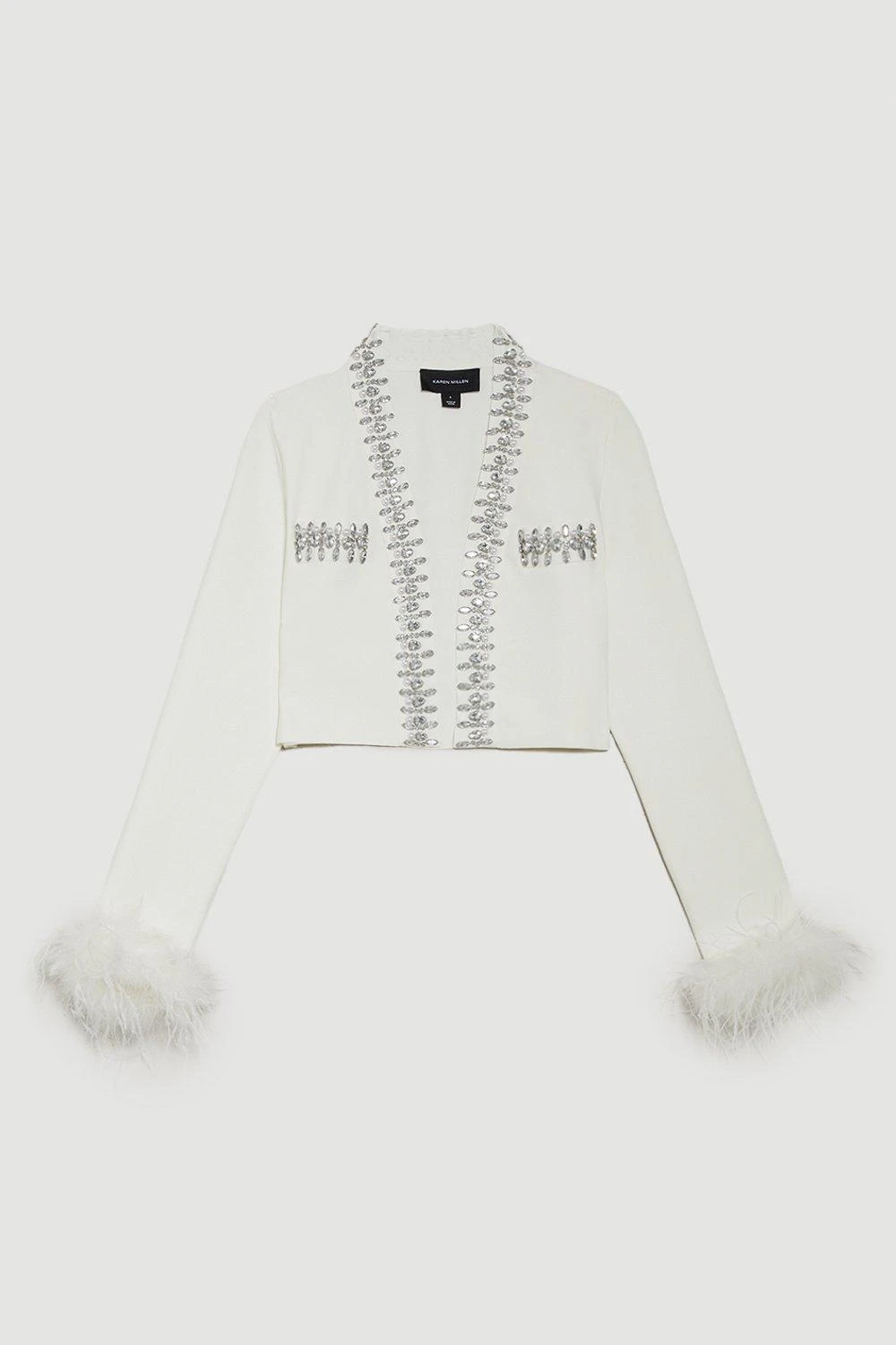 Karen Millen Embellished Bandage Jacket With Feather Cuff