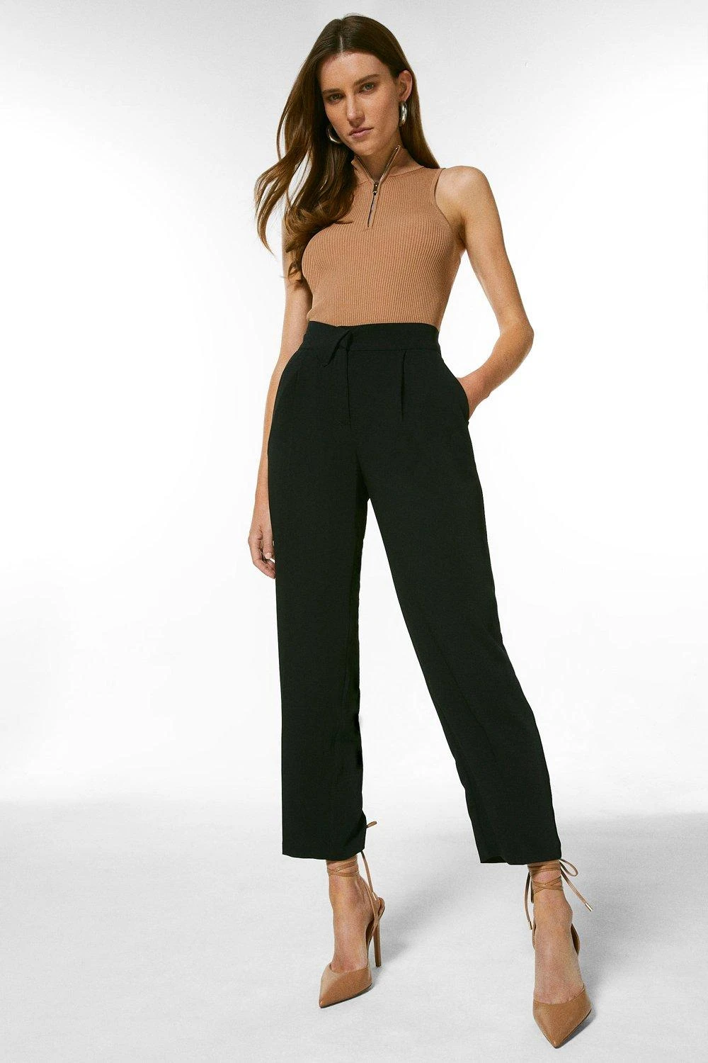 Exuding leg-lengthening appeal, these essential tailored trousers will soon become a wardrobe stalwart you reach for time and time again. They feature a draped waistline cut to a flattering high-rise fit, practical pockets and subtly cropped hems to frame your favourite footwear.