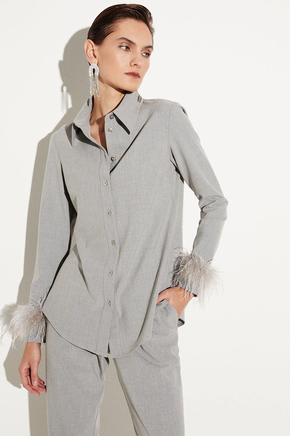 - Neckline: Collared