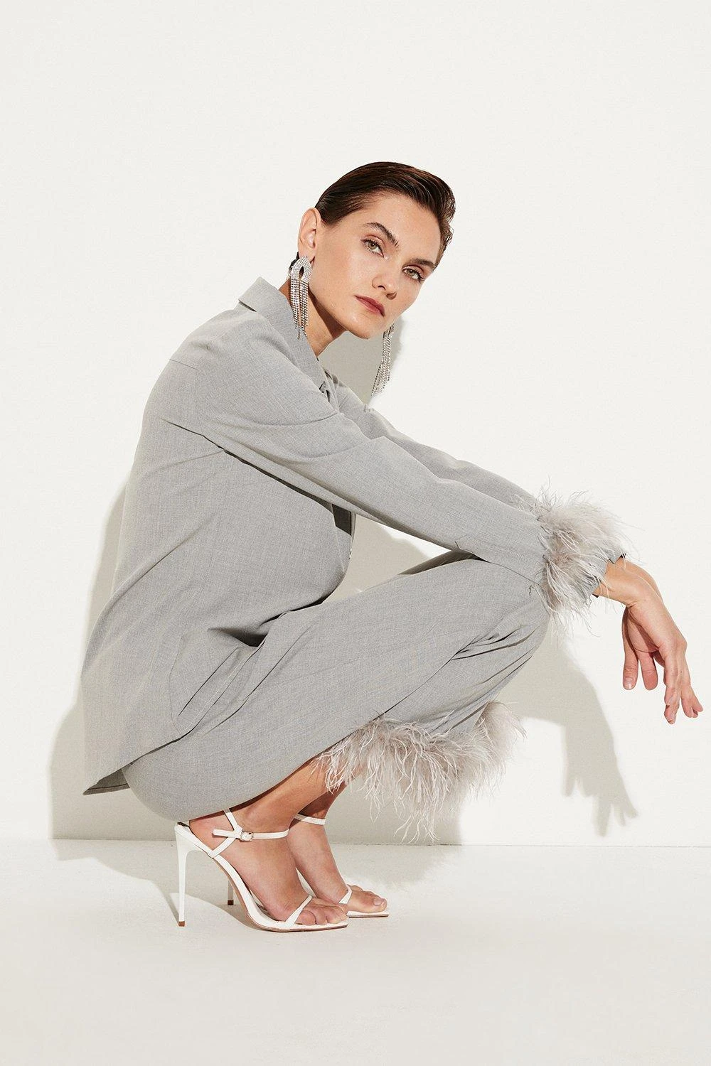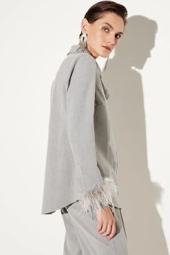 Main: 68% Polyester, 27% Viscose, 5% Elastane. Trim: Feathers. Dry clean only, do not iron trim. Model wears UK 8/ US 4. Model height: 5″9. Length measurement: 70cm.