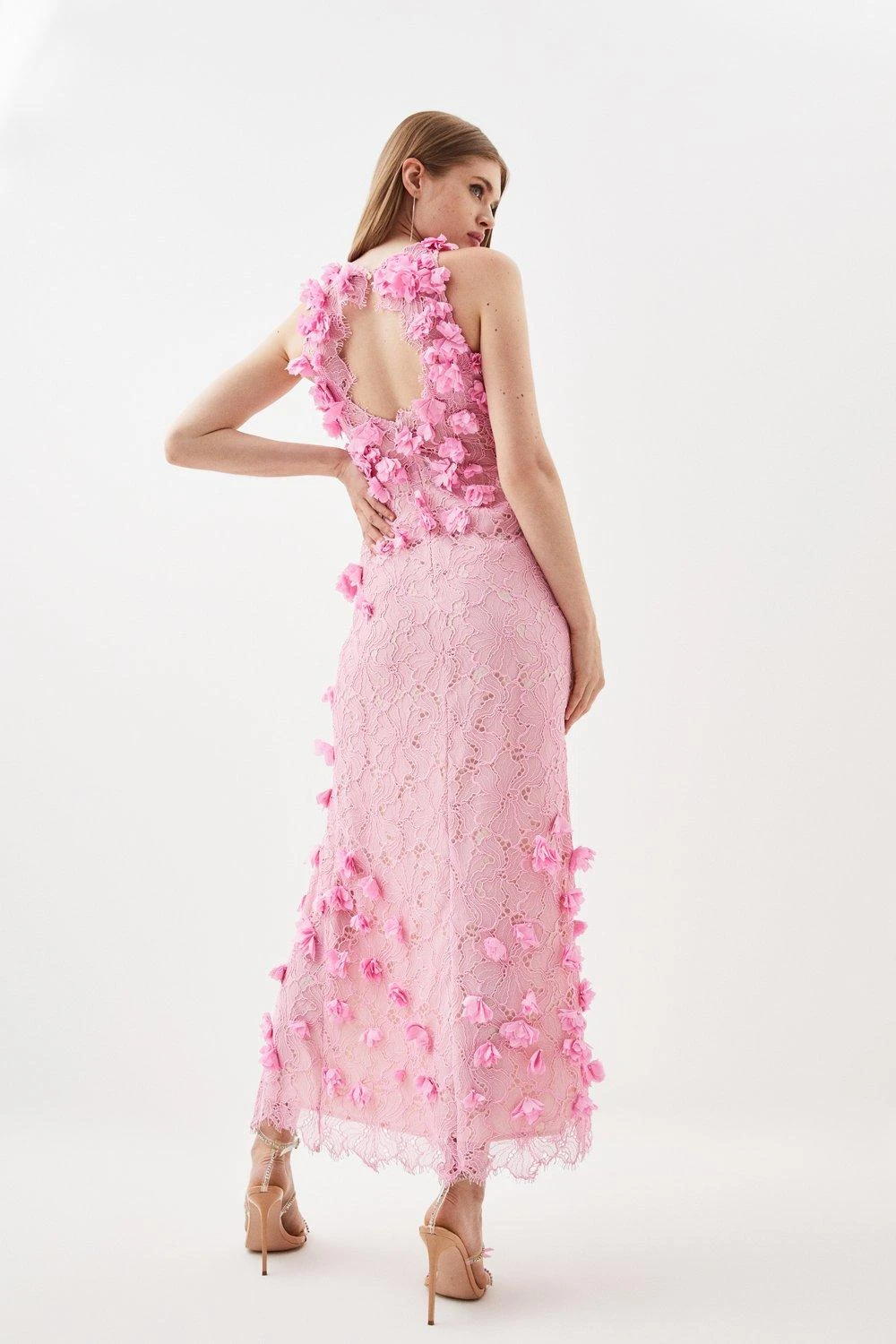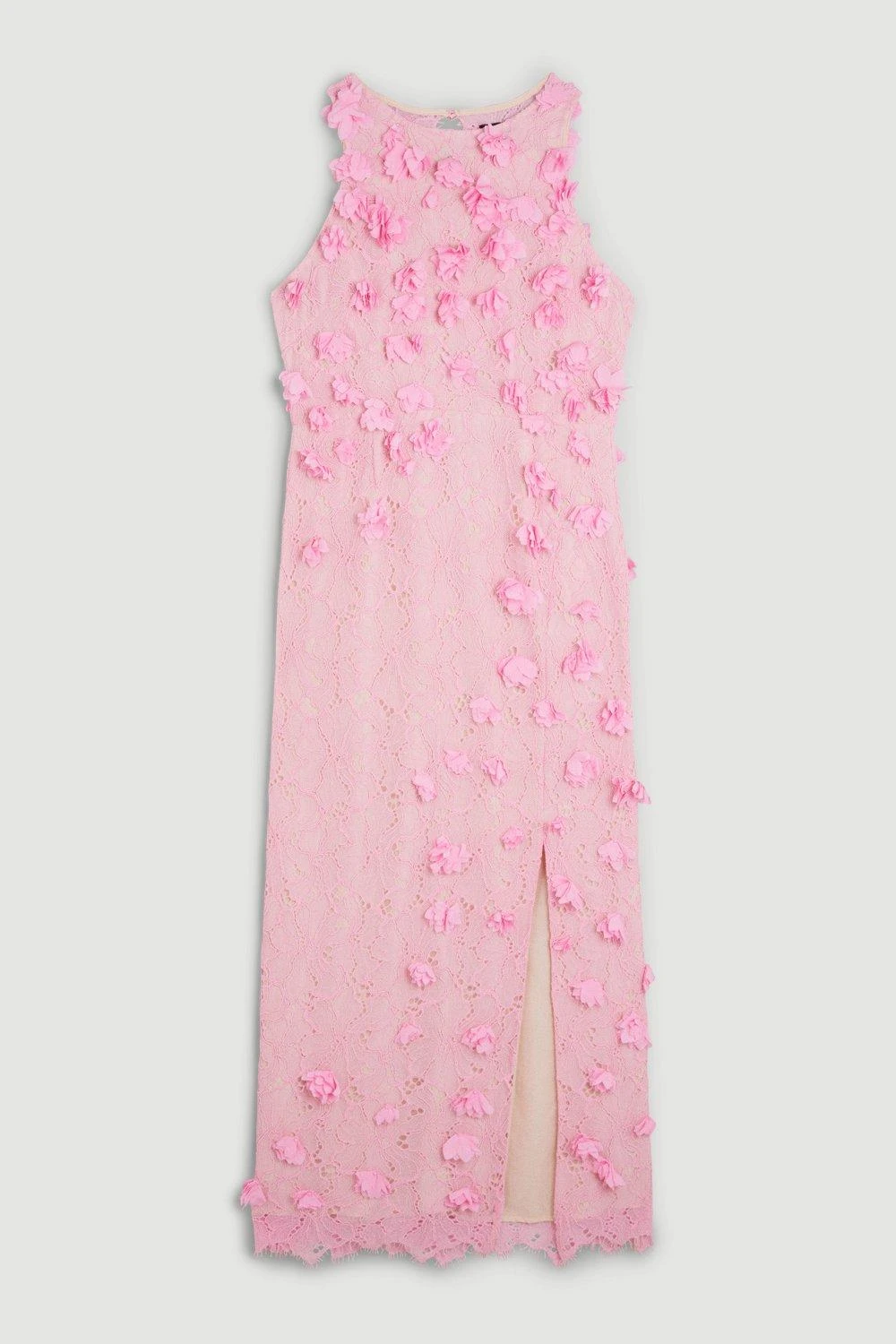 Karen Millen Floral Applique On Lace Woven Midi Dress