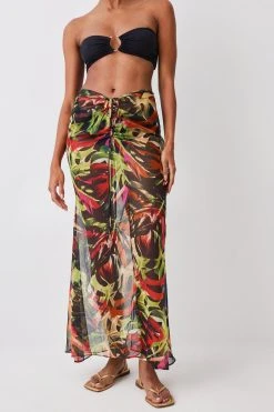 Karen Millen Floral Palm Printed Ruched Woven Beach Skirt