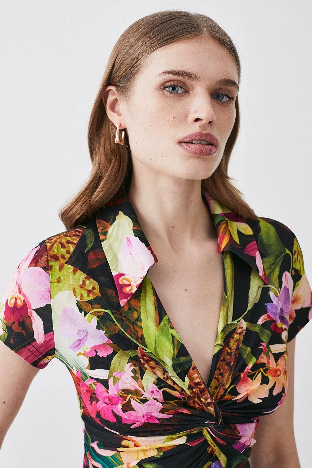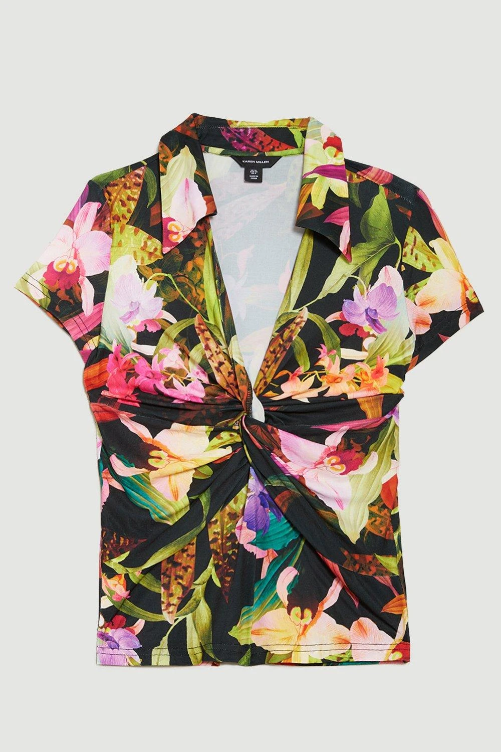Karen Millen Floral Print Collared Twist Knot Jersey Top